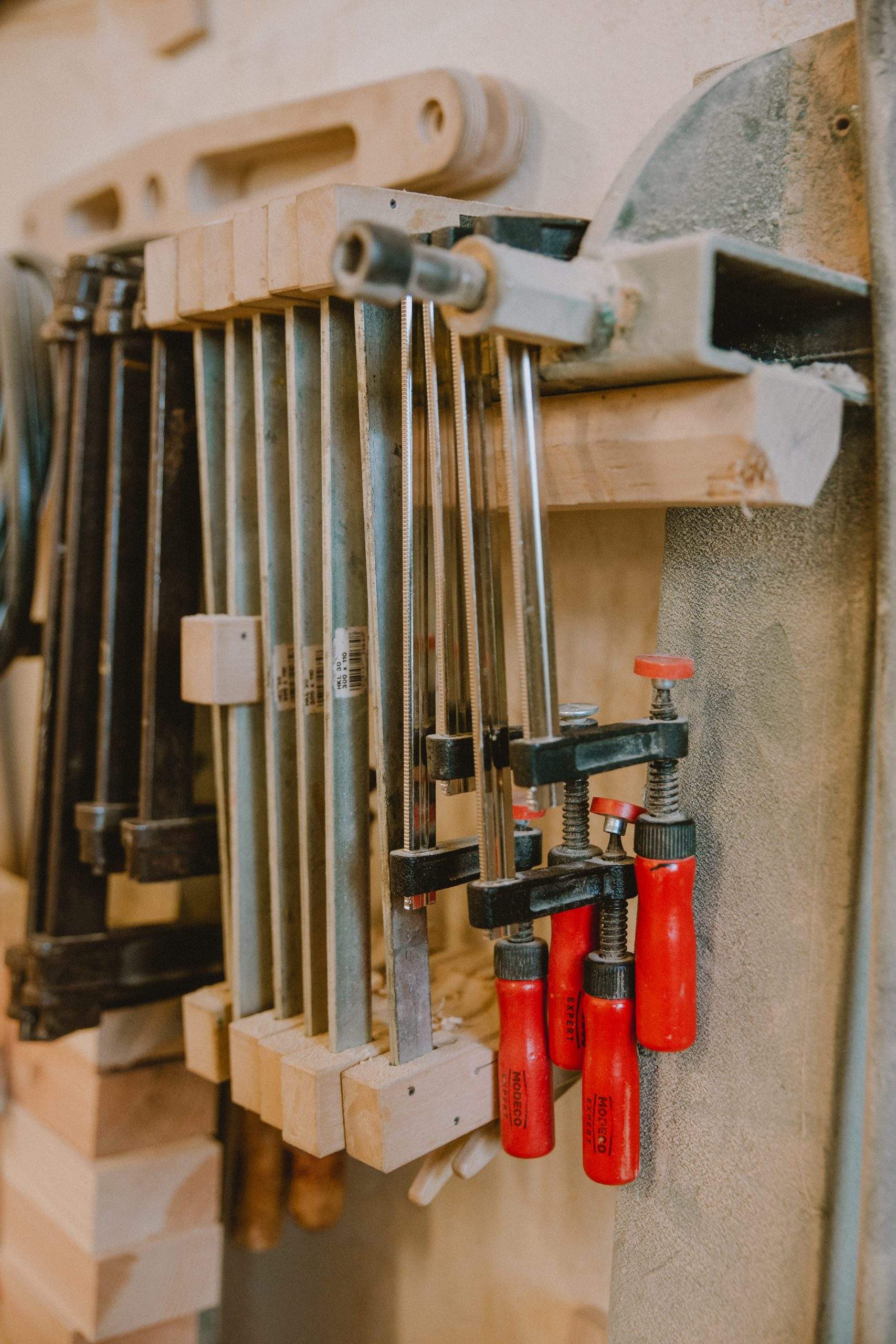 Sākumā Kārlis no savām lauku mājām braukājis strādāt darbnīcā Balvos. Līdz Rugāju centrā noskatījis pamestu ēku, bijušo pasta māju, kas labi derēja galdniecības darbiem. «Bieži braucu garām, domāju, būs forša darbnīca. Jautāju pagastā, vai varu iegādāties, un to palaida izsolē. Mēs ar sievu ar veseriem izdauzījām visas sienas, izveidojām divas lielas telpas. Lielie logi, gaisma nāk iekšā, un te ir forši strādāt. Nākotnē domāju vēl izzāgēt durvis un ko lielāku uzbūvēt. Otrajā stāvā ir lakotava. Ziemā tur speciāli jākurina, tāpēc pagaidām tikai apakšu apdzīvojam.» Pirms pāris gadiem Kārlis bija atvēris koka suvenīru leti pirms ieejas darbnīcā, diemžēl pircēju bija gaužām maz, tāpēc to nācās aizvērt.
