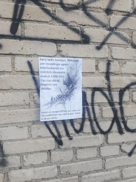 “Es dzīvoju Daugavpilī. Nesen savā rajonā atradām šādu skrejlapu. Kādi “gudri” cilvēki vēlas nopelnīt naudu, izmantojot saspringto situāciju pasaulē. Uz papīra lapas ir uzdrukāts piedāvājums rakstīt uz apšaubāmu e-pasta adresi, lai it kā atpirktos no dienesta Nacionālajos bruņotajos spēkos. Saprotams, ka tas ir vienkārši vēl viens krāpšanas veids, bet daži jaunieši varētu tam noticēt. Es domāju, ka jūs varētu brīdināt cilvēkus par to, ka tas ir krāpniecības mēģinājums.”