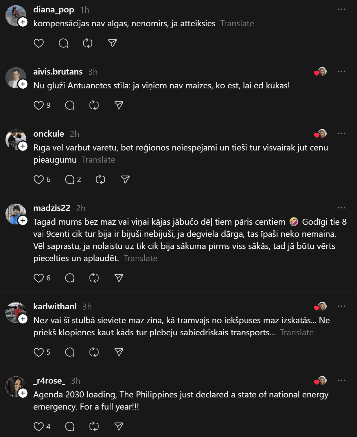 Annija norāda: “Es uzskatu, ka šajos, degvielas krīzes apstākļos, deputātiem, ministriem un pārējiem, kam apmaksā degvielu, būtu šī ekstra jāpārtrauc saņemt. Lai maksā no savām “niecīgajām” aldziņām. Nu vai brauc uz darbu ar sabiedrisko, to jau mēs varētu nosegt!”