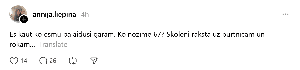 Ko nozīmē 67? Skolēni to raksta uz burtnīcām un rokām… 0