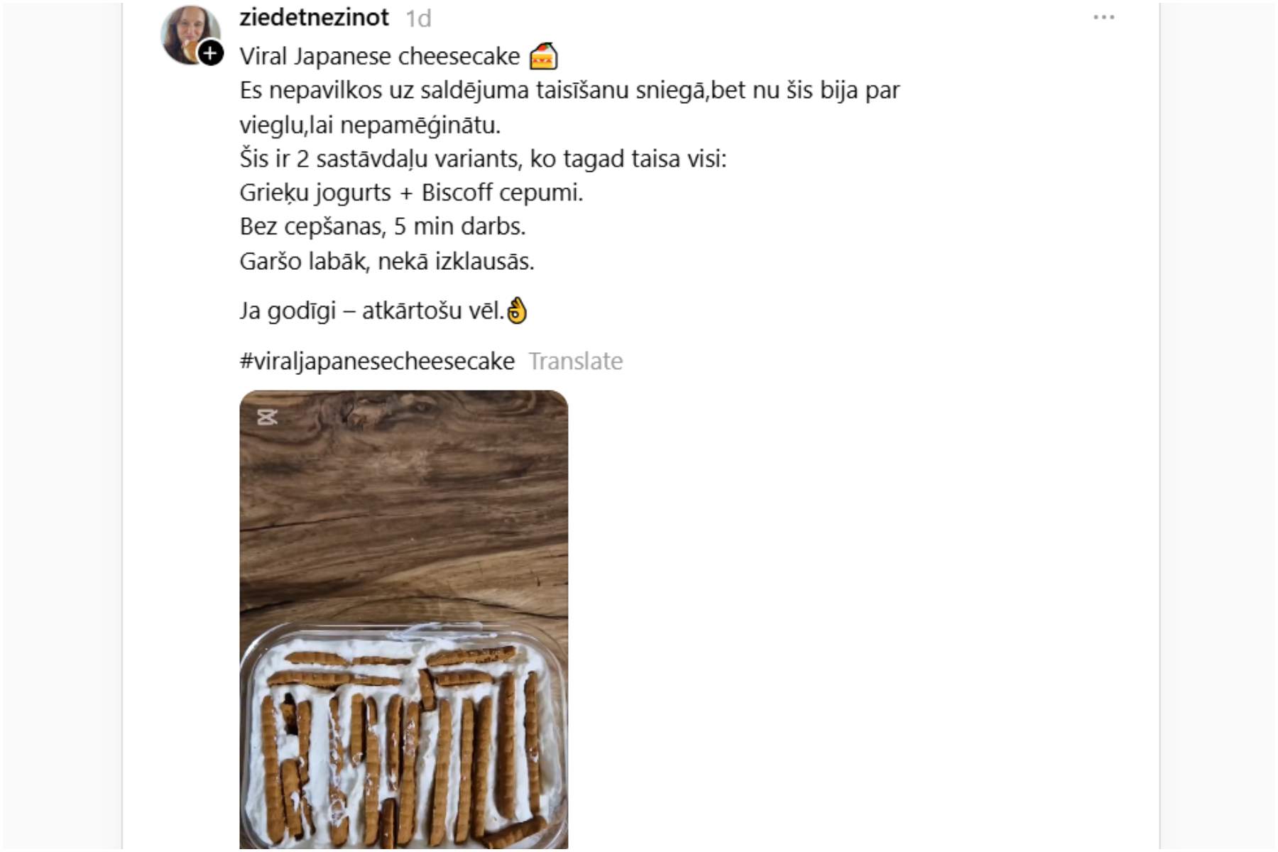 Tieši gribējàm mēģināt, bet aizmirsu saldo krējumu nopirkt.