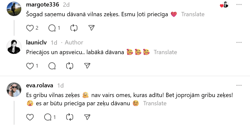 Sociālajā tīklā “Threads” Ziemassvētku laikā īpašu uzmanību izpelnījies kāds vienkāršs, bet ļoti trāpīgs un sirsnīgs ieraksts. Tā autors atklāti atzīst – kamēr vieni sūdzas par nesaņemtām dārgām ierīcēm zem eglītes, viņš patiesi priecājas par vecmāmiņas adītām zeķēm un šalli. Vērtīgāku dāvanu par to nav.
