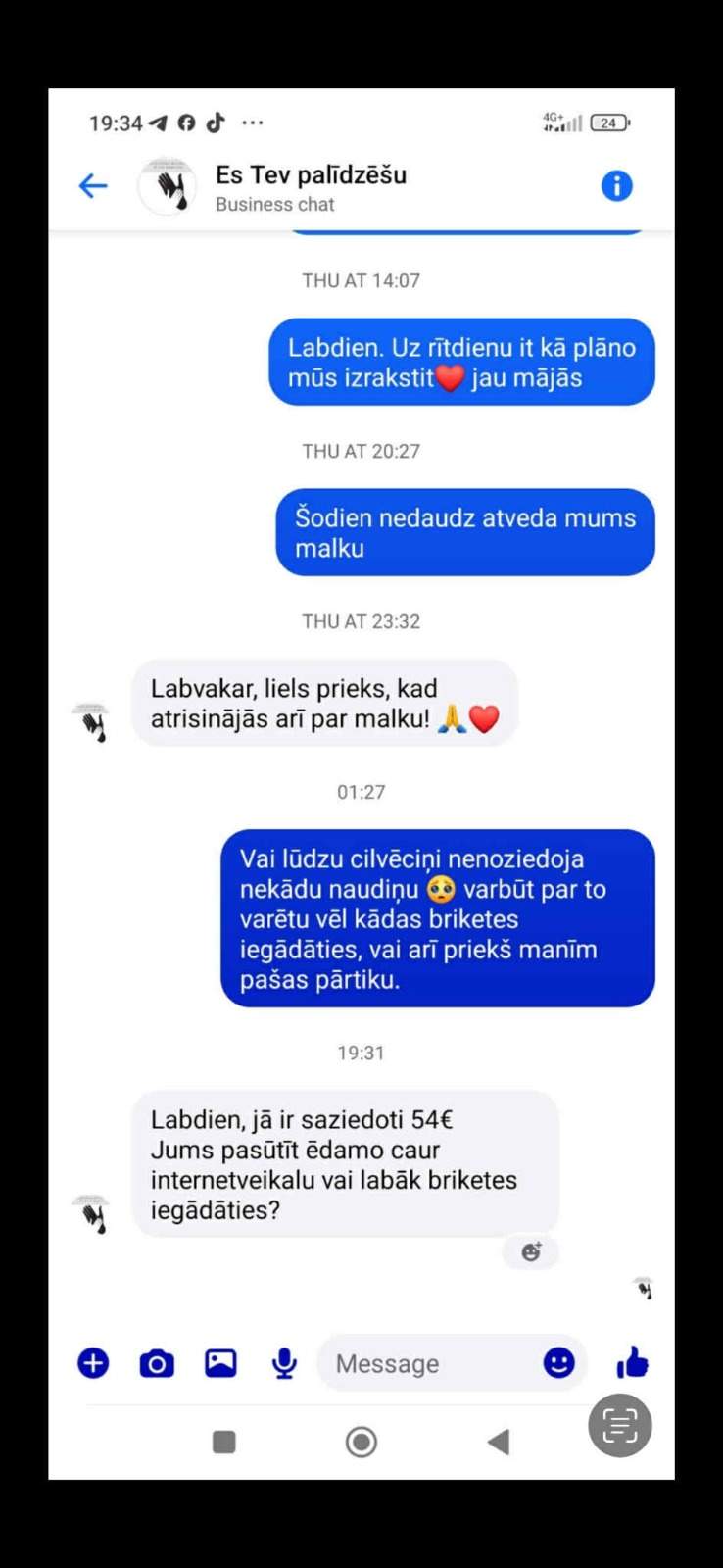 “Ļoti labi, ka esat izlēmuši beigt savu pastāvēšanu! Par jūsu krāpnieciskajām darbībām jau sen cilvēki sūdzas! Izdomāti žēlabaini stāstiņi un bildes uzģenerētas ar mākslīgo intelektu, nevienas atskaites, nevienas bildes, ka cilvēkiem patiešām reāli tiek piegādāta palīdzība, komentāri vienmēr visos ziedojumu lūgumu postos ir atslēgti (!) – tas arī jau ir ļoti nopietns signāls, ka jūs baidāties, ka cilvēki komentāros stāstīs patieso situāciju. Ielieciet patiesos ciparus, cik jums ir saziedots, skrīnšotu no bankas konta! Tur tik atklāsies, ka saziedots ir simtkārt vairāk, nekā jūs esat te piekabinājuši feika lapelē te komentāros klāt. Cilvēki dalījās tūkstošiem ar jūsu postiem, un ziedoja jums nenormālas summas! Jums pašiem nav kauns nodarboties ar krāpniecību?”