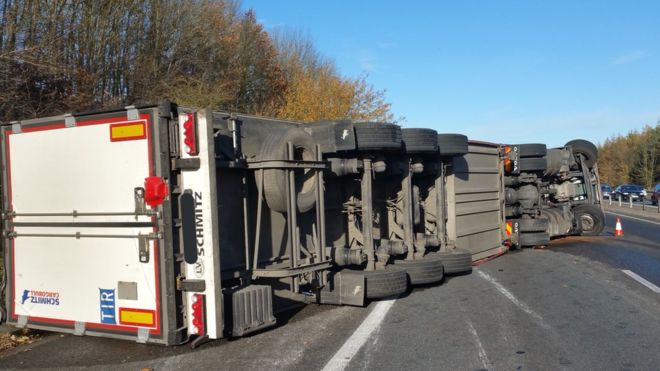 Lielbritānijā ieslodzīts latvietis, kura vadītais kravas auto apgāzās, šoferim esot smagā dzērumā, ziņo BBC.com.