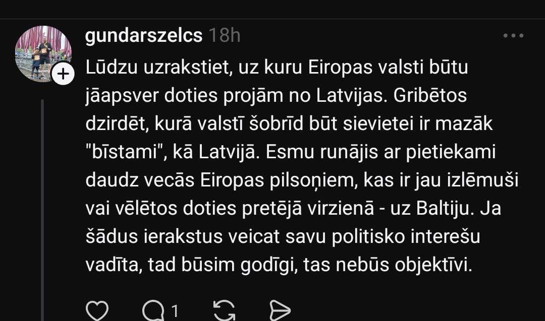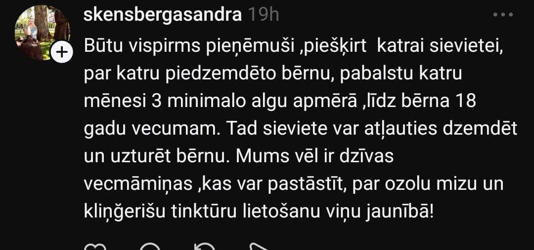 Lietotājs ar segvārdu @sievietebezvarda atsaucas uz kādu jauniešu sarunu: “Varbūt ne tik radikāli, bet ļoti līdzīgi teica man jaunietes sarunā, ka apsver domu pamest Latviju, ja te sāk triumfēt šāda šaurpierība. Un tas noteikti mūsu demogrāfijai nenāks par labu. Tie ZZS un NA vēlētāji – seniori un agresīvi lauku veči mums demogrāfiju nepacels!”