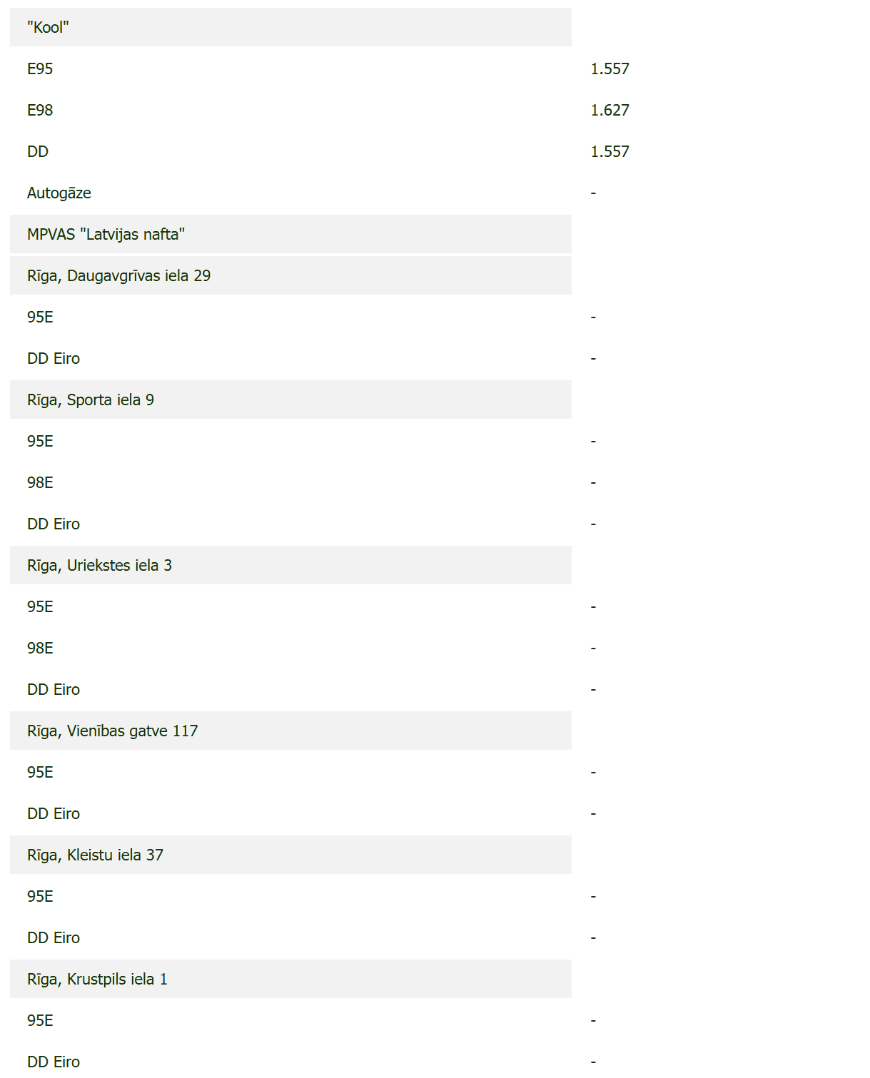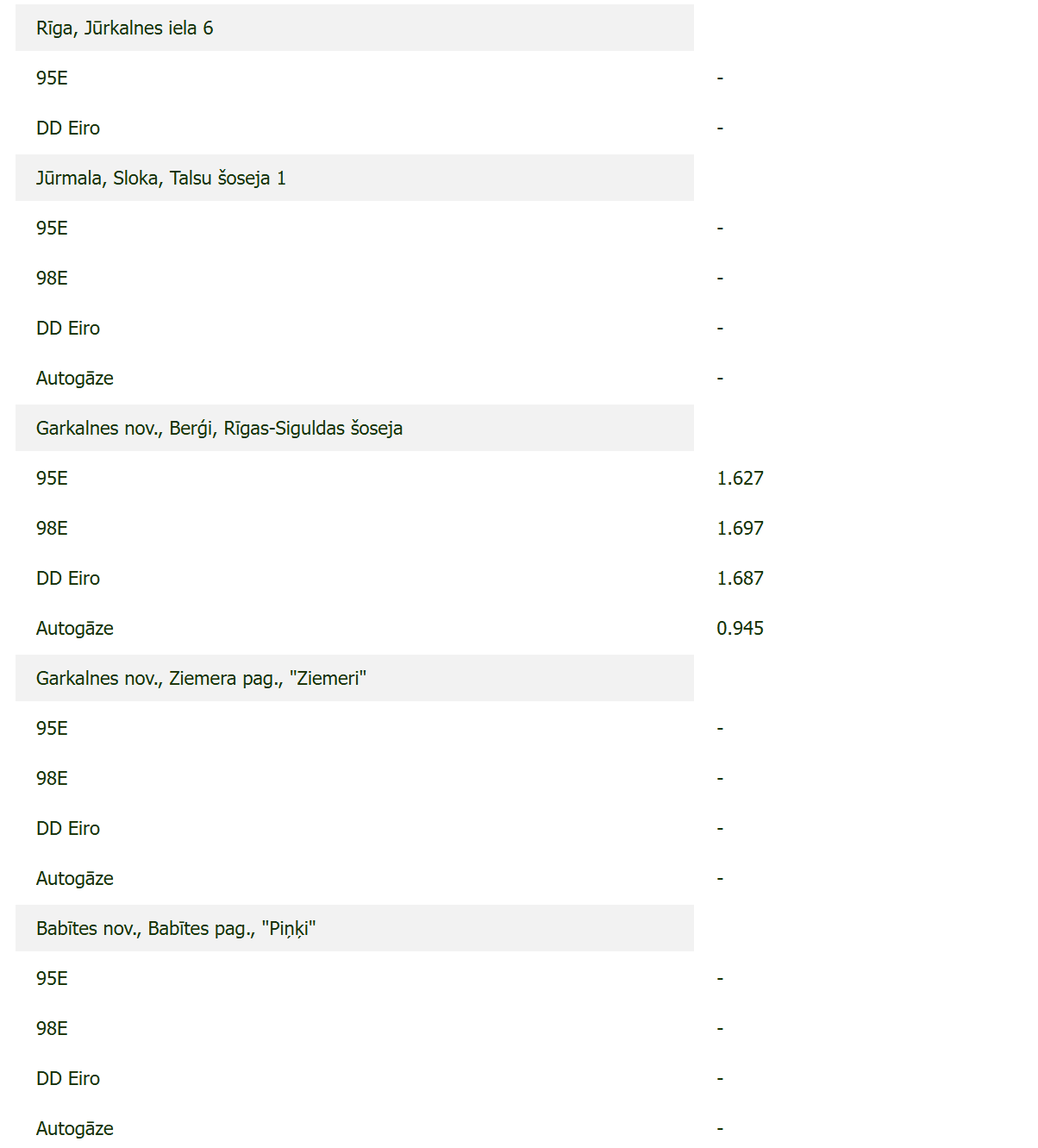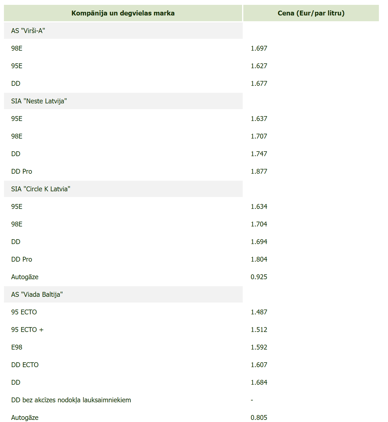 Degvielas cenas Latvijā 6. martā plkst. 10 9