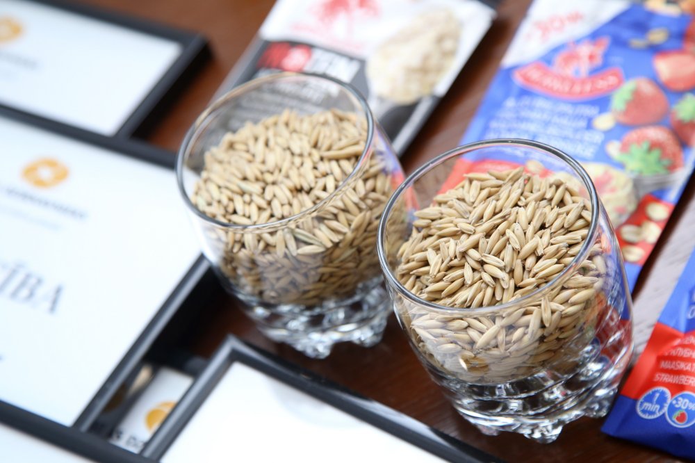 “Rīgas dzirnavnieka” direktore trešdien jaunās selekcionētās auzu šķirnes “Herkuless Baltic” sēklas kā pirmajai pasniedza zemnieku saimniecībai “Klidziņa” Jelgavas novadā.