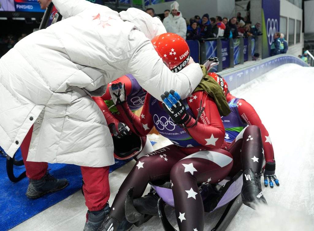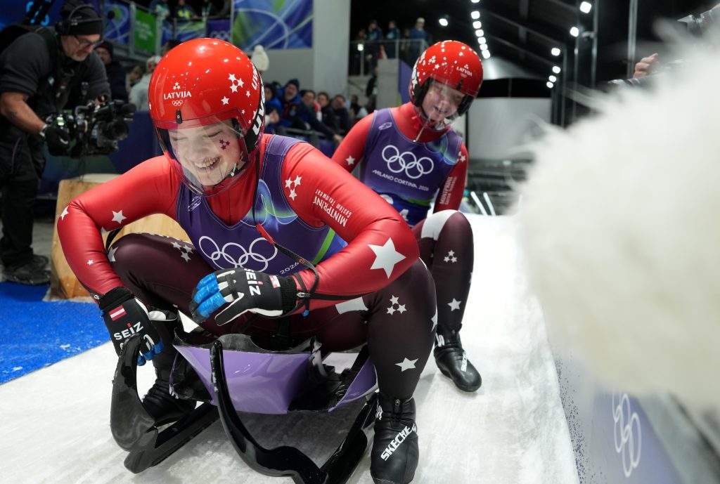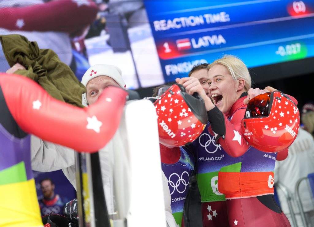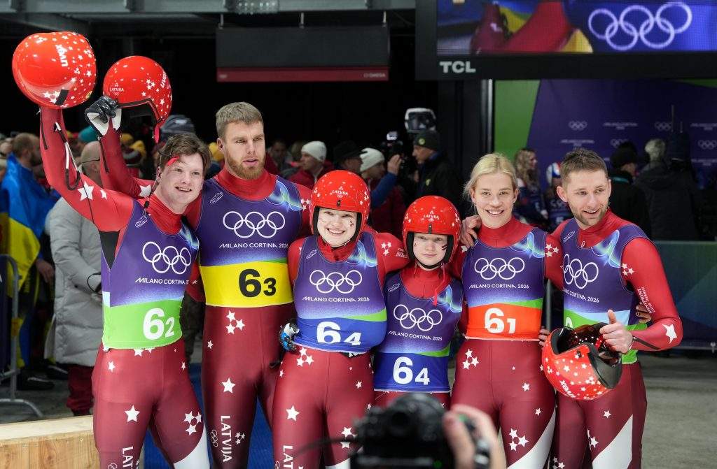FOTO. Nedaudz pietrūka: Latvijas kamaniņu sportisti olimpisko spēļu komandu stafetē izcīna ceturto vietu 9