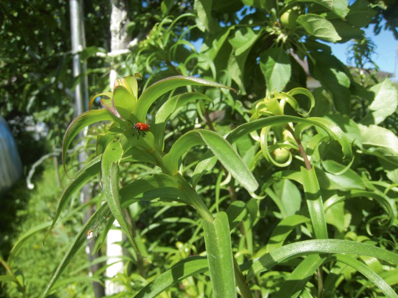 Oranžā vabole jeb lilijgrauzis nodara lilijām lielu postu.