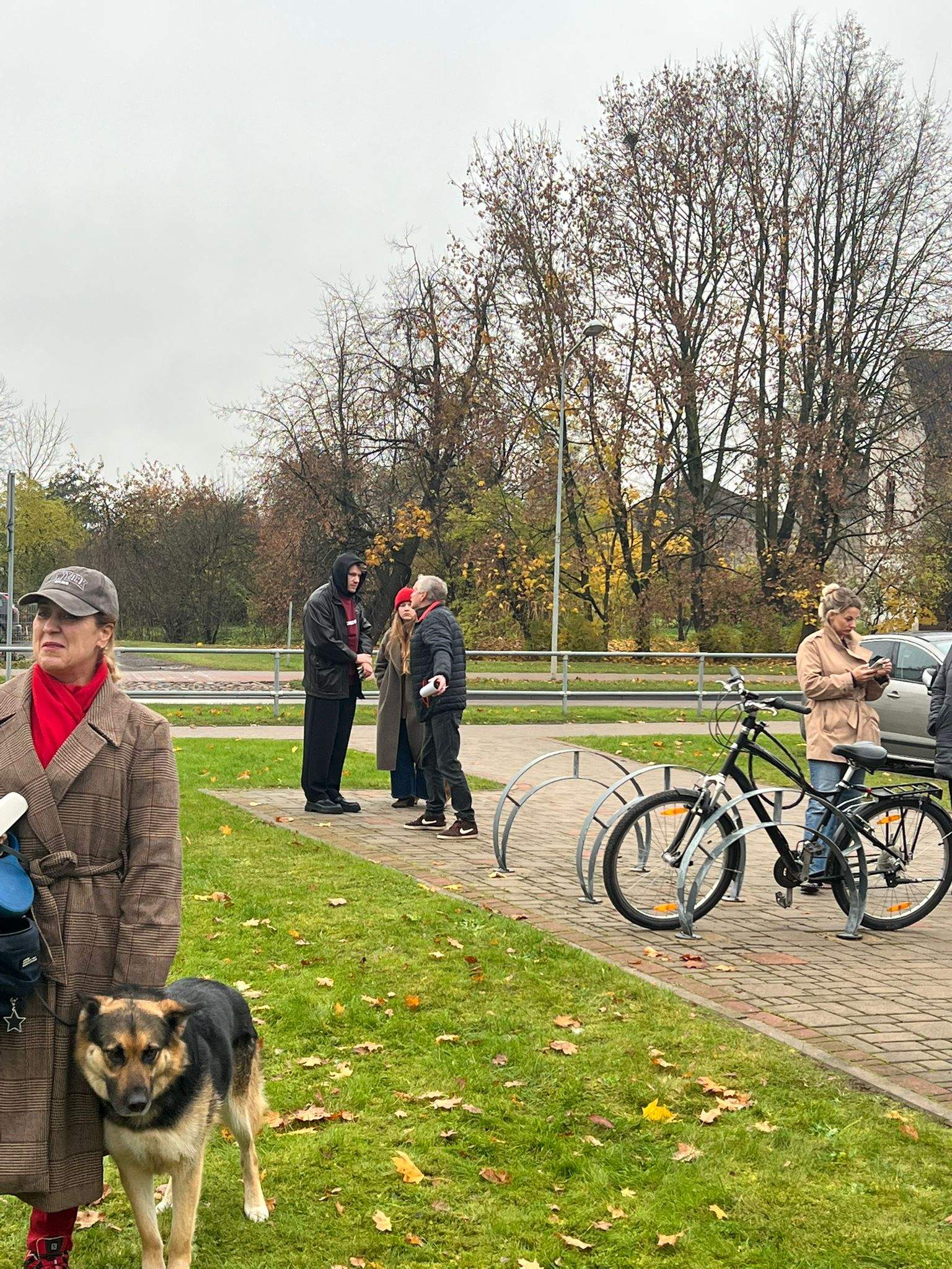 Sanākušie cilvēki izsauc “TAISNĪBU! TAISNĪBU!” un gaida, kad ar viņiem parunāt iznāks kāds no domes darbiniekiem. Uz vietas ir sanākuši aptuveni 50 cilvēki, kas gatavi paust savu viedokli.