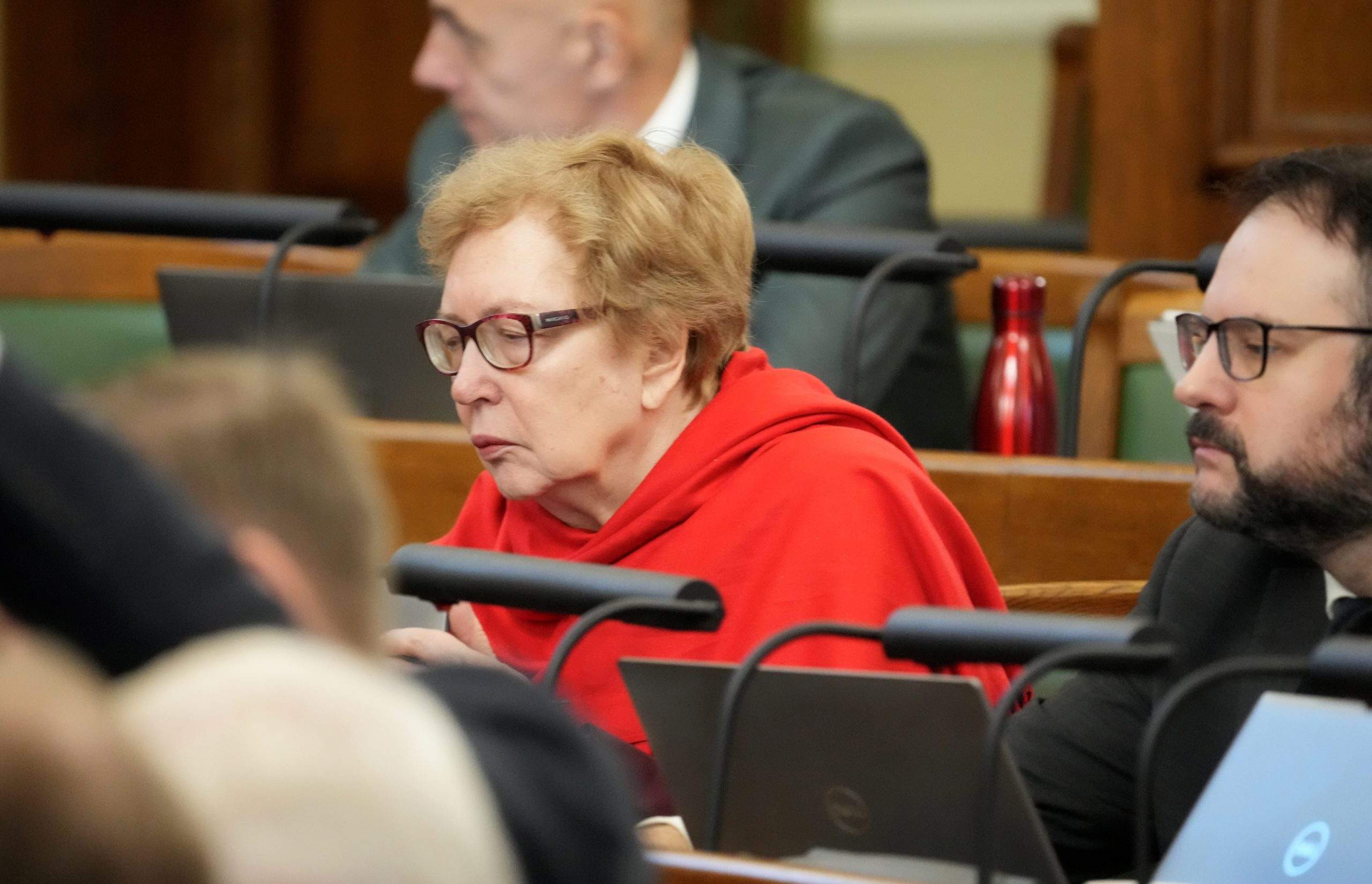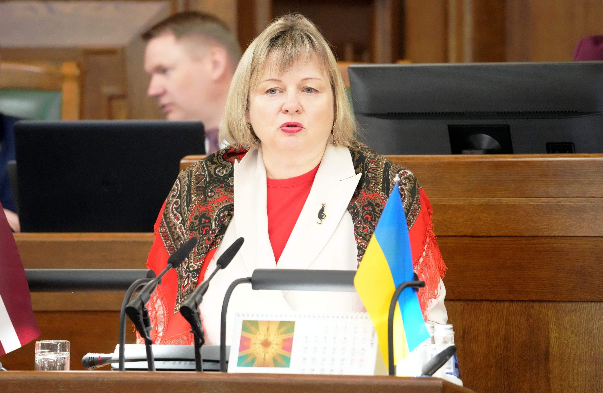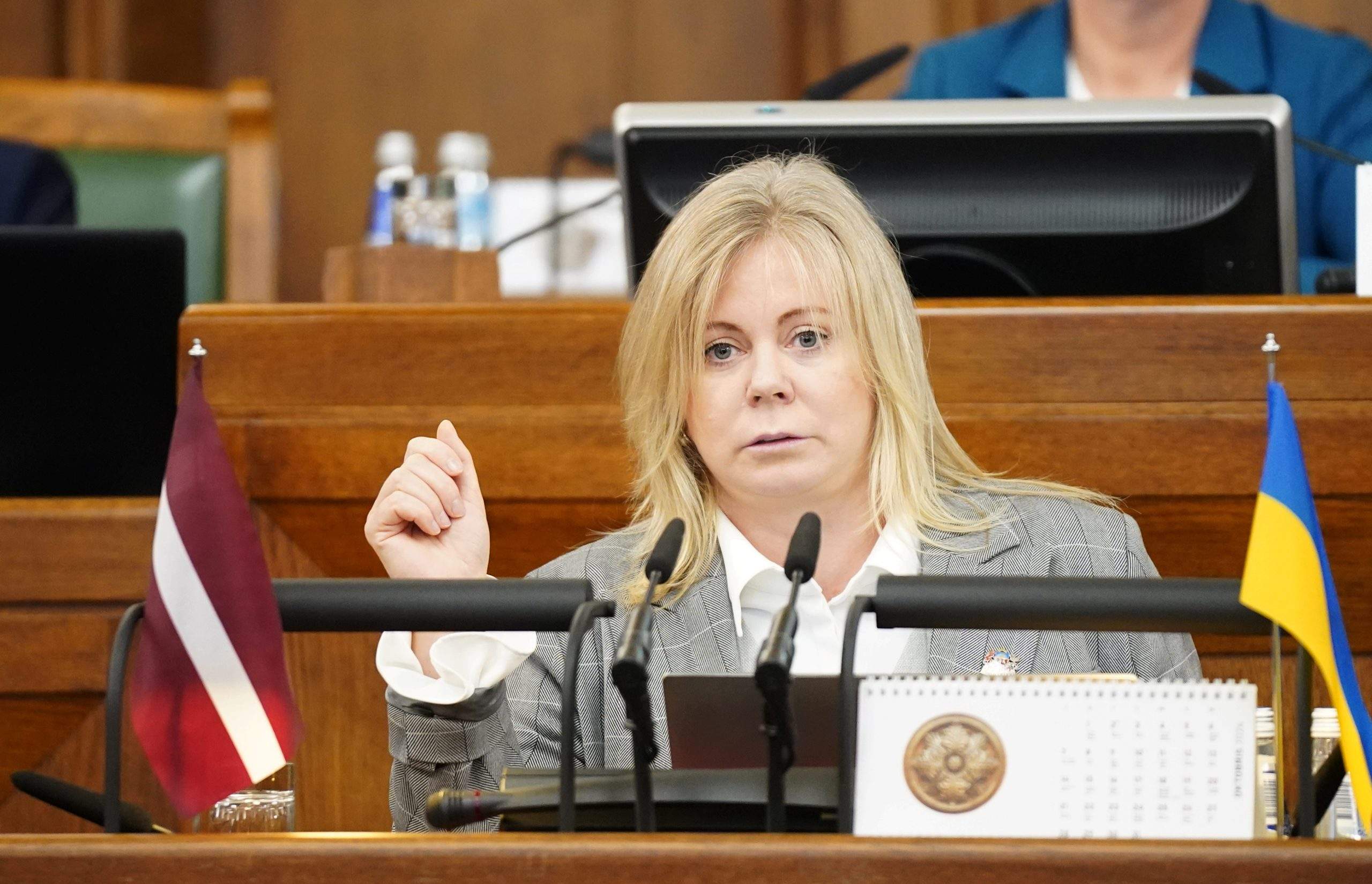 Viktorija Pleškāne no tribīnes: “Kāpēc es neatnācu uz piketu? Man bija bail par savu drošību un veselību. Pēc pirmā lasījuma, kad balsoju par izstāšanos, mana meita un es saņēmu draudus par to, ka mani piekaus! Tas ir normāli?”