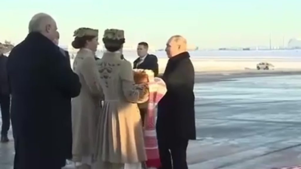 Video sākumā arī redzams interesants moments, ka Kremļa saimnieks Minskas lidostā pielaiž sev tuvumā sešiniekus – divas sālsmaizes pasniedzējas, Lukašenko dēlu, kas sarokojās ar Putinu, bet pats Lukašenko pasniedza Krievijas valdniekam krāšņu ziedu pušķi. No tā Putins drīz vien atbrīvojās.