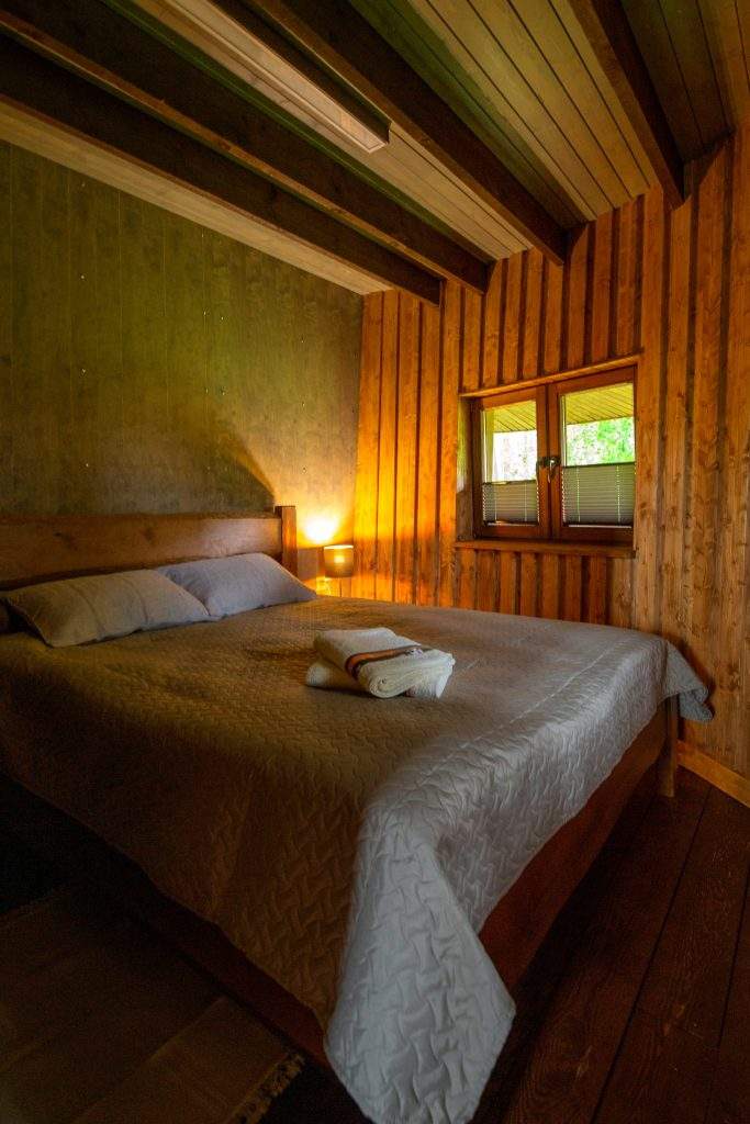 Pazemes mājās ir divguļamā gulta un divvietīgs dīvāns, savukārt koku namiņos ir divguļamā gulta un mansarda stāvā divi vienvietīgi matrači. Mājas ir pilnībā aprīkotas ar visām ērtībām – duša, tualete, virtuves zona, gultas veļa, dvieļi, čības, fēns, grils un piknika zona ir pie katras mājiņas. “Tas viss jau ir iekļauts cenā, nekas nav jārezervē atsevišķi un par to nav papildu maksas. Pieejama licencēta makšķerēšana Tērvetes ūdenskrātuvē no krasta, laipām vai laivas, pludmale, laivu noma, SUP dēļi un ūdensvelosipēdi. Ir arī pastaigu iespējas – var doties parkā vai baudīt veco priežu meža burvību. Glempinga koku un pazemes namiņu apmeklētājiem Latvijas valsts mežu dabas parks Tērvetē apmeklējums ir iekļauts nakšņošanas cenā.
