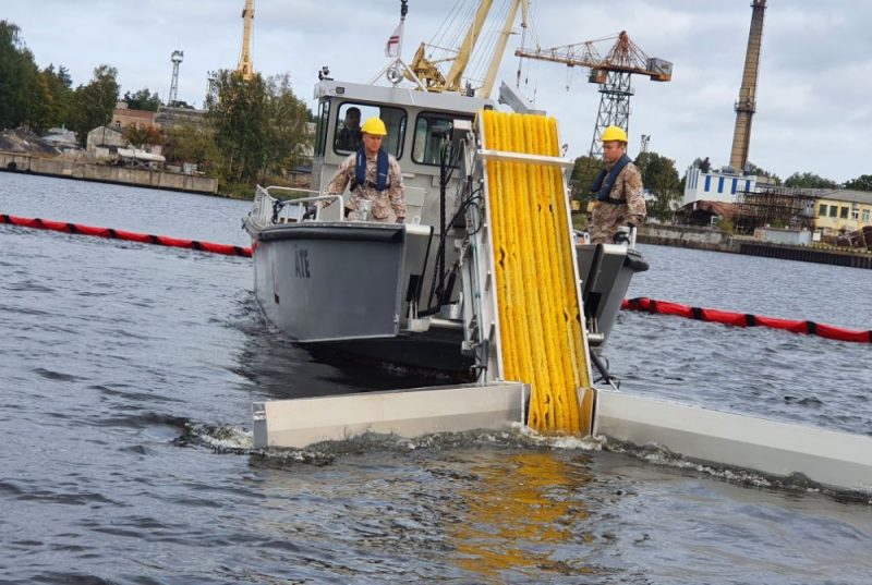 Jūras spēku Krasta apsardzes dienests piesārņojuma novēršanas vingrinājumus sadarbībā ar Latvijas ostām rīko katru gadu.