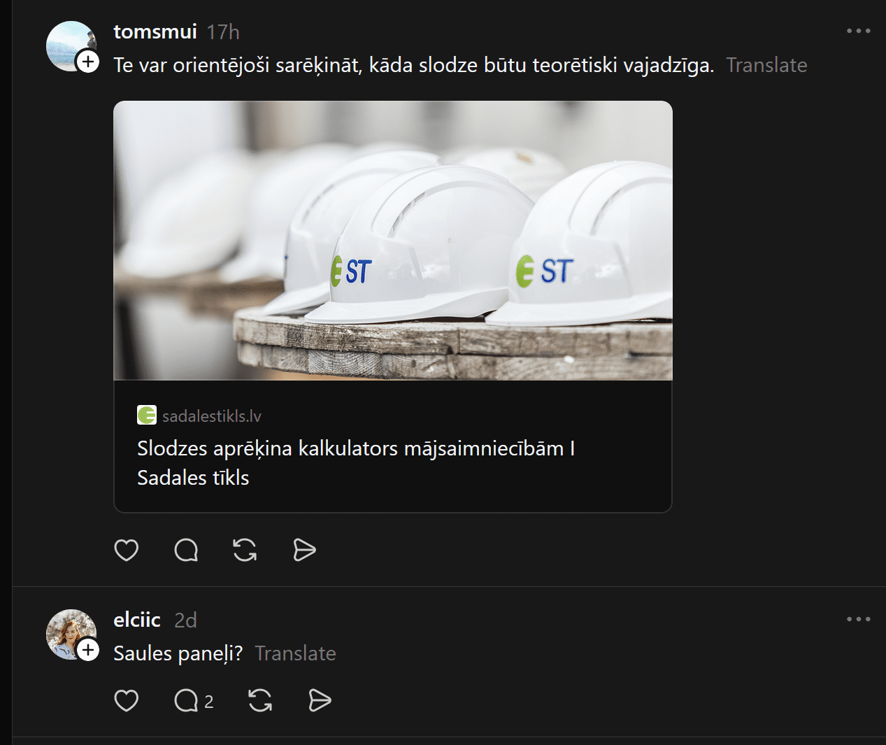 “Saņēmu elektrības rēķinu par mammas māju – 9,34 eiro elektrība, 19,11 eiro pārvades un sadales pakalpojumi. Mamma jau tā katru lampiņu slēdz ārā, lai taupītu manu naudu, bet kāda jēga, ja rēķina lielākais maksājums nemaz nav par patērēto. Palīgā! Es no šī ļoti maz ko saprotu, tāpēc jautājums tiem, kas šim izurbušies – pie kā pāriet un ko darīt ar jaudām, lai samazinātu rēķinu un pēc iespējas vairāk maksātu par reāli patērēto, nevis kārtējo abonēšanas maksas modeli?” Egita raksta.