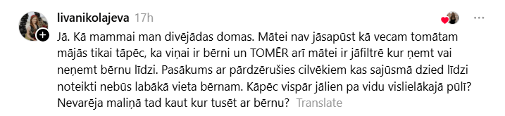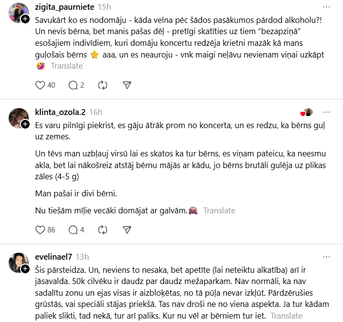 Arī citiem koncerta apmeklētājiem ir savs viedoklis par šo. Lūk, ko par šādu vecāku rīcību domā pārējie: