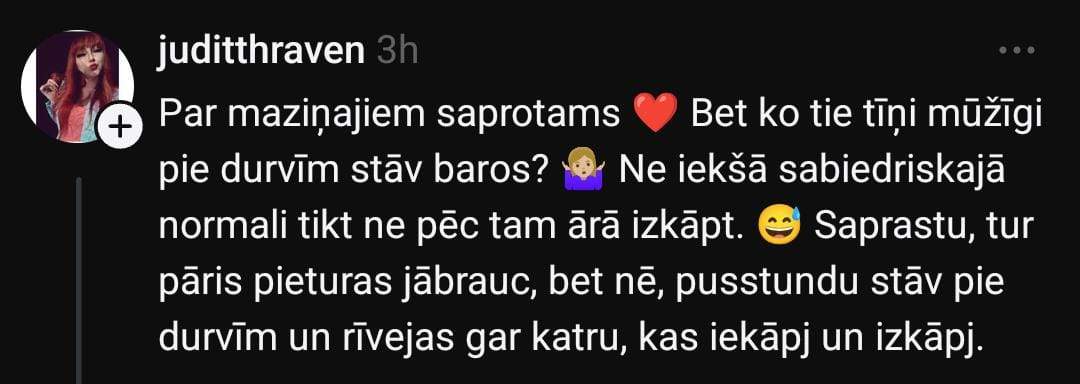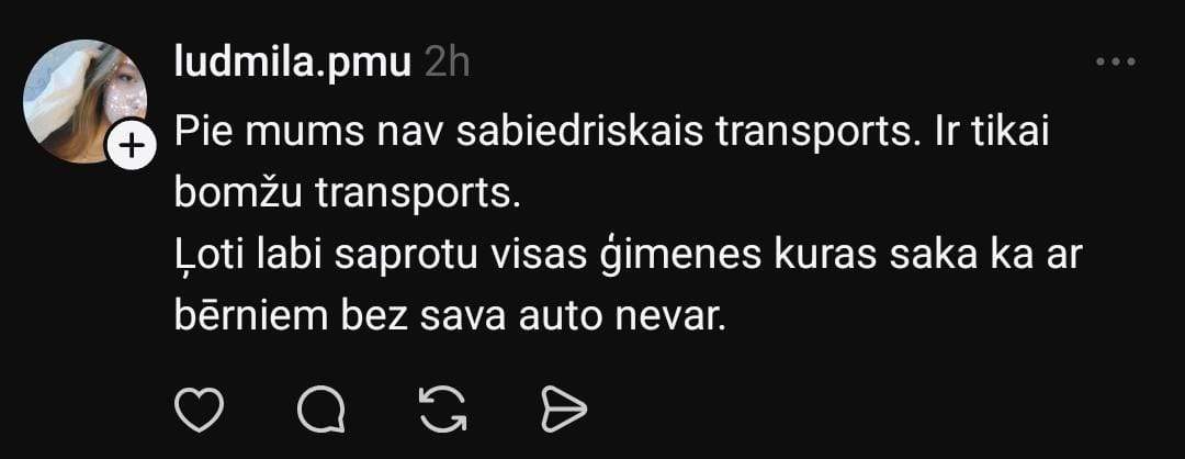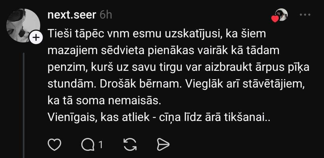 “Uz kurieni brauc visi tie pensionāri pirms plkst. astoņiem no rīta??? Tiešām, UZ KURIENI??? Un kāpēc nevar braukt 10 vai 11?”