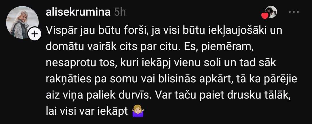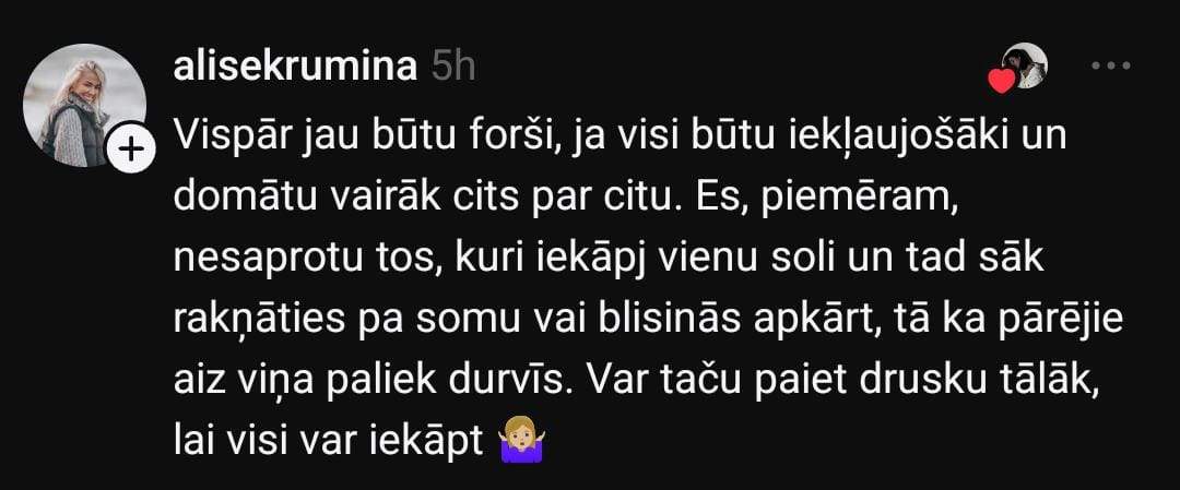 Sociālo mediju platformā “Threads” sieviete dalās stāstā, kas liek aizdomāties. Viņa raksta: