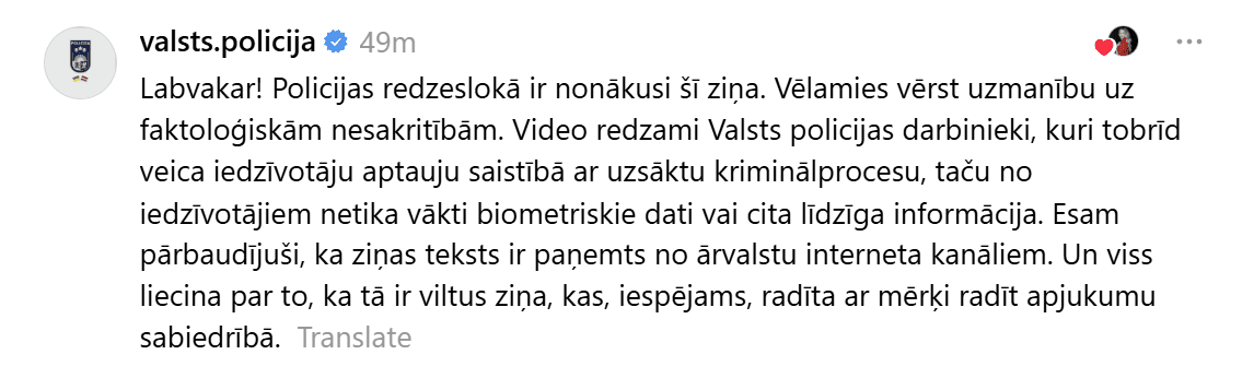 Taču, kā izrādās, šie apgalvojumi nebūt nav patiesi. Valsts policija norāda, ka arī viņu redzeslokā ir nonākusi šī ziņa, vēršot uzmanību uz faktoloģiskām nesakritībām.
