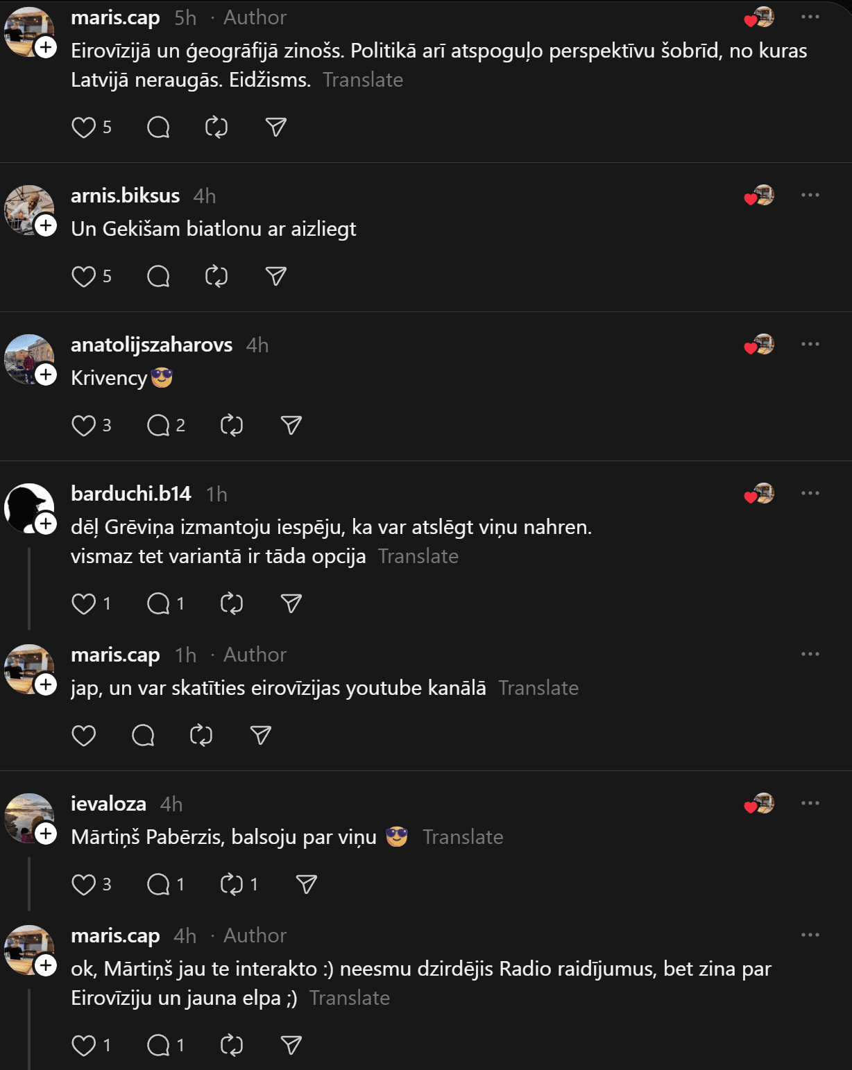 Eirovīzijas dziesmu konkurss ir viens no skatītākajiem un emocijām bagātākajiem mūzikas notikumiem Eiropā un ārpus tās robežām. Katru gadu tas vieno miljoniem skatītāju, kas seko līdzi ne tikai dziesmām un priekšnesumiem, bet arī valstu nacionālajām atlasēm, skatuves šoviem un negaidītiem pārsteigumiem. Arī Latvijā šis konkurss iemantojis īpašu vietu skatītāju sirdīs – no triumfa ar “Prāta Vētru” un “Mariju Naumovu” līdz cerībām, ko nes katrs jauns pārstāvis. Šobrīd, kad tuvojas “Supernova”, kur uzzināsim nākamo Latvijas pārstāvi, bet pirms tam soctīklā “Treads” izveidojusies diskusija par to, kuram vajadzētu komentēt Eirovīzijas finālu.