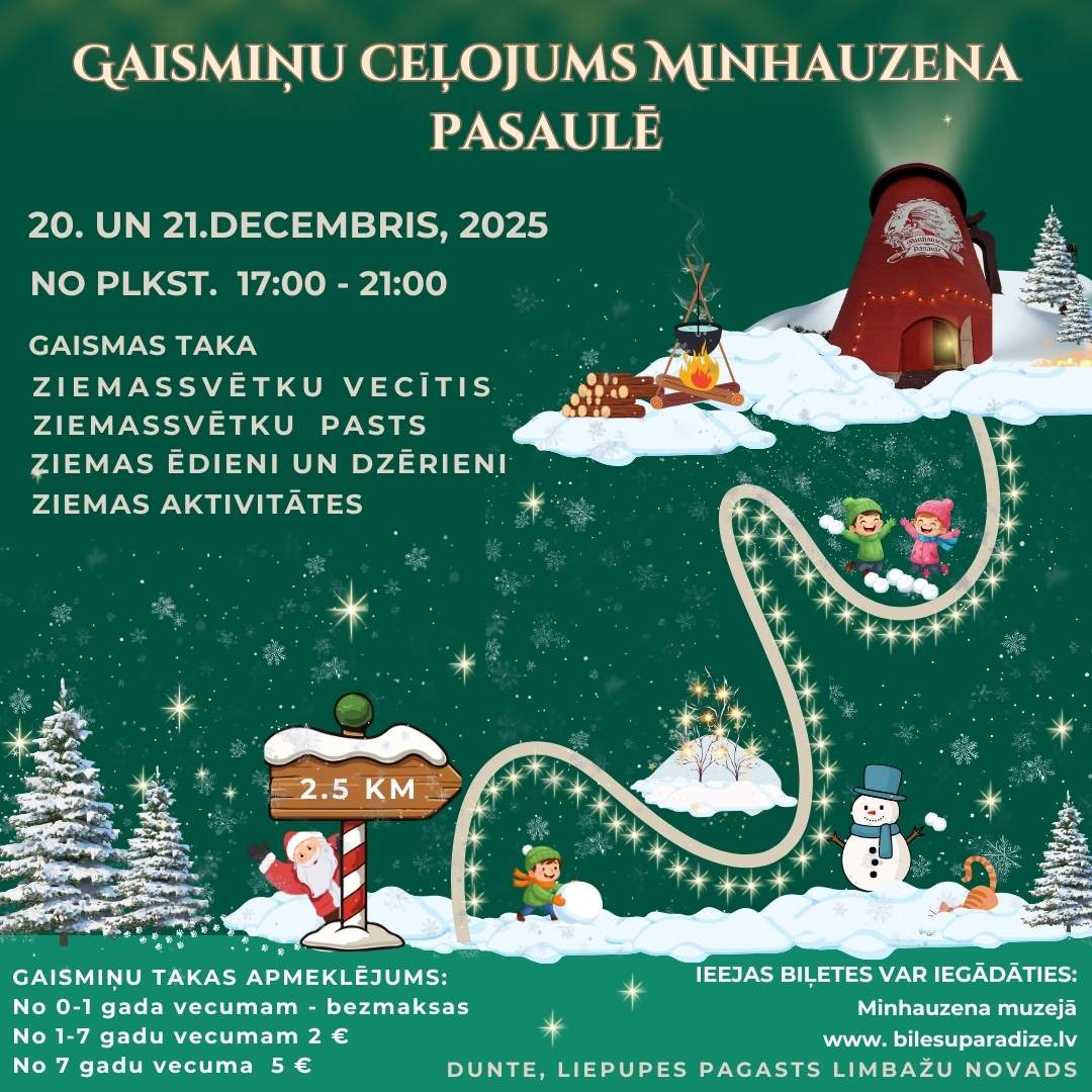 20. un 21. decembrī Minhauzena pasaule aicina apmeklētājus uz pavisam jaunu ziemas notikumu – “Gaismiņu ceļojums Minhauzena pasaulē”, kas ierasto Alus kausa taku pārvērtīs maģiskā un gaismas piepildītā svētku ceļojumā.