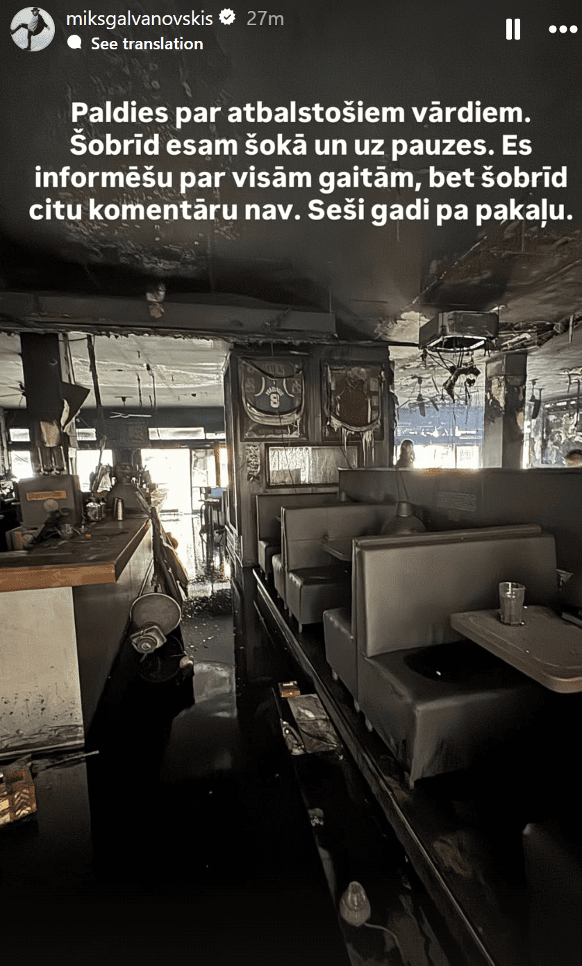 “Sveiciens, mīļie, ir notikušas diezgan pamatīgi sliktas ziņas par to, ka nezināmu iemeslu dēļ pēc darba laika ir aizdedzies “Sinners” bārs un diemžēl nezinām par tālāku nākotni, bet pagaidām mūsu darbība ir apturēta,” ar šādiem vārdiem tikko, pirms 30 minūtēm savā Instagram pirmajās sajūtās dalās bāra īpašnieks, mūziķis Miks Galvanovskis.