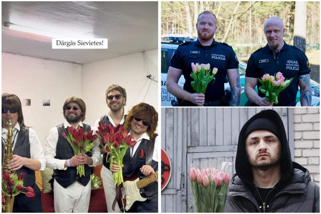 “Saules mūžu jums!” Latvijas vīrieši ar ziediem un muzikāliem pārsteigumiem sveic sievietes svētkos