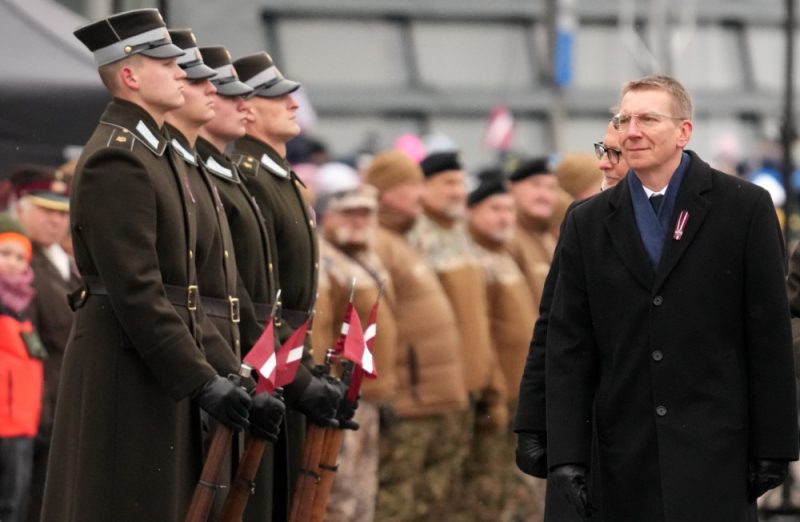 Viņš pateicās Latvijas karavīriem, kuri apmāca Ukrainas aizstāvjus, viņš īpaši sveica robežsargus, zemessargus un karavīrus, kuri stāv sardzē uz valsts Austrumu robežas, ikdienā sargājot Latviju un Eiropas Savienību.