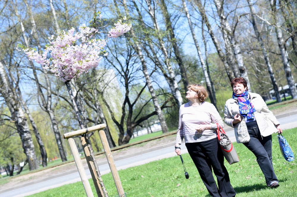 Ne tikai Japānā. Priecājas par ziedošo sakuru Uzvaras parkā 0
