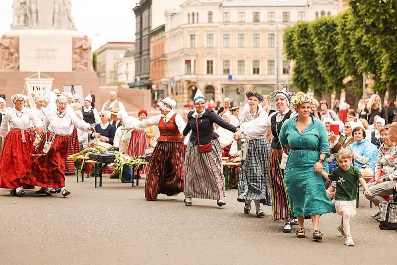 Vērmanes dārzā norisinājās tradicionālā folkloras programma, turpat arī pamatīgu interesi raisošās dzīvā mantojuma darbnīcas no Gaujas plostniekiem līdz dubultcimdu adītājām. Rīgas Latviešu biedrības namā spēlēja zolīti un dancoja, bet kulminācijā lielā sadziedāšanās un sadejošanās notika Brīvības laukumā, kas veselas trīs stundas pēc kārtas kļuva par skanīgāko vietu visā festivālā.