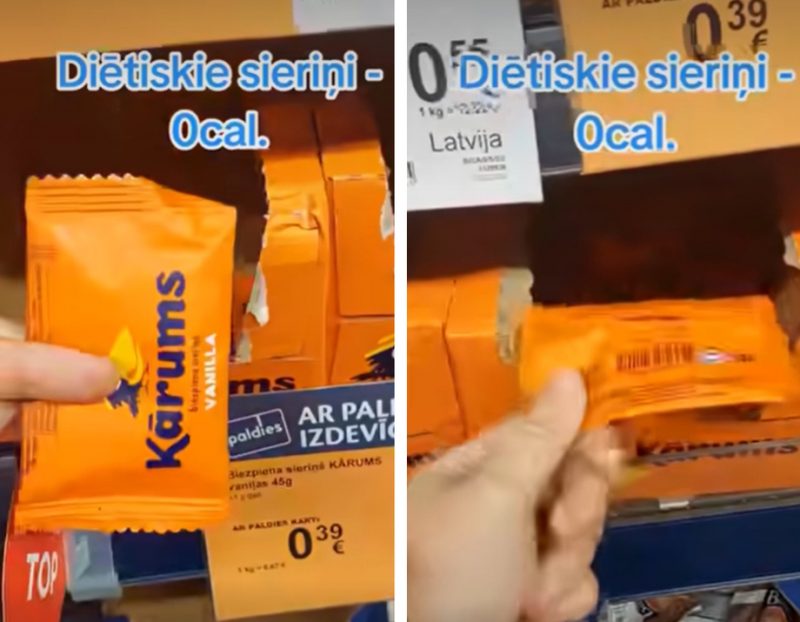 Kāda vērīga pircēja veikalā “Maxima” pamanījusi tirgojam diētiskos “Kārums” sieriņus par izdevīgu akcijas cenu – 0,39 centiem. Tomēr viņas pārsteigums bija liels, kad viņa konstatēja, ka tiek tirgots tukšs iepakojums…