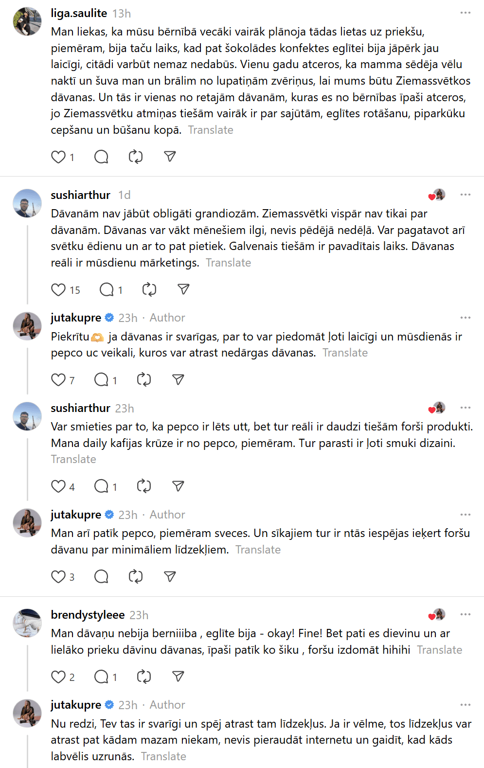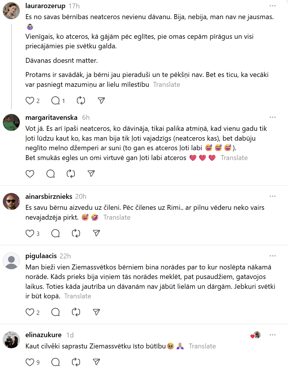 Ieraksts, protams, izraisīja plašāku rezonansi – vairums cilvēku piekrīt, ka Ziemassvētku burvība neslēpjas dāvanās.