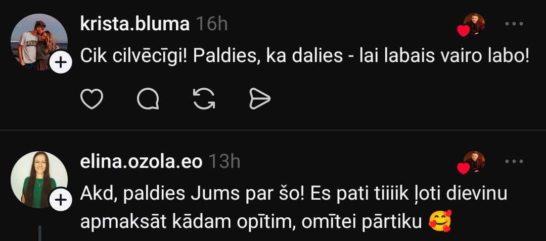 Liela daļa komentētāju saka lielu paldies, taču ir arī tādi, kas uzskata, ka palīdzēt vajadzētu klusi, bez publiskas uzmanības.