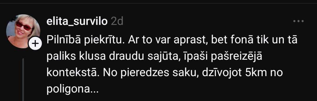 Un tieši tāpēc man īsti nav saprotami komentāri no cilvēkiem, kuri šeit nedzīvo. No vietām, kur šādu ikdienu nepazīst, ir viegli pasmieties vai ironizēt par to, ka kādam šis troksnis traucē, bet tā nav kaprīze – tā ir realitāte, ar kuru mēs dzīvojam.
