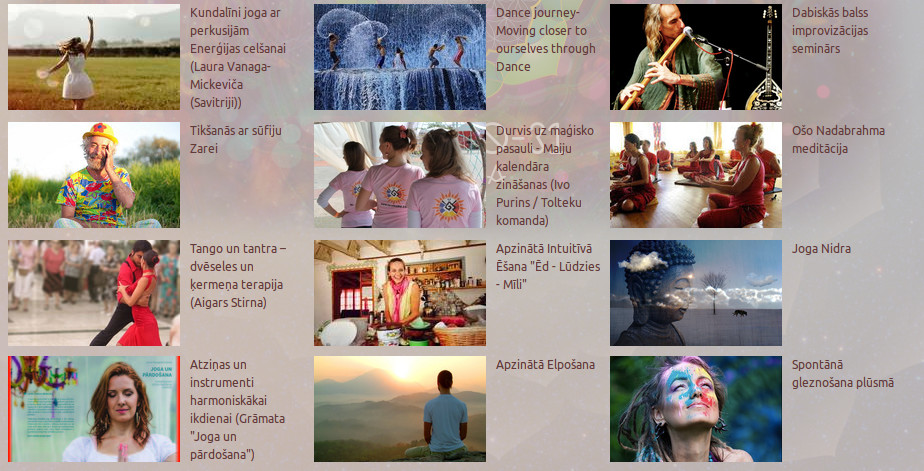 - Klasiskā un gaisa joga, meditācijas, pranajama (elpošanas vingrinājumi), joga nidra (dziļā relaksācija)