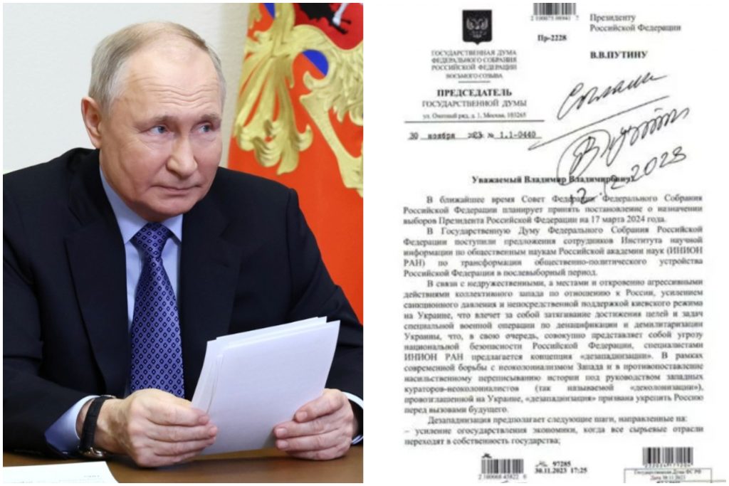 Dokumentus, kurus, kā redzams, parakstījis Putins, esot pārtvēruši ukraiņu hakeri, un tajos izklāstīti Putina plāni pēc uzvaras Ukrainā. Dokumentā norādītais datums ir 2023. gada 12. decembris.