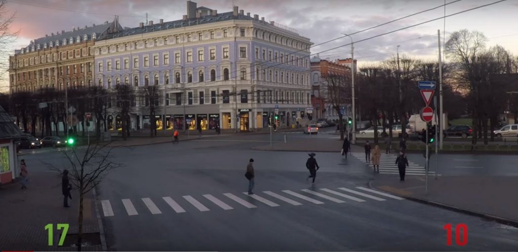 CSDD ar slēpto kameru uzņemtajā video piefiksēta ikdienas steiga un nepacietība Rīgas ielās. Video uzņemšanas laikā (dažādos diennakts laikos, dažādās dienās) Rīgas gājēju pārejas pie zaļā signāla šķērsoja 63% gājēju, kamēr 37% atļaujošo signālu nesagaidīja.