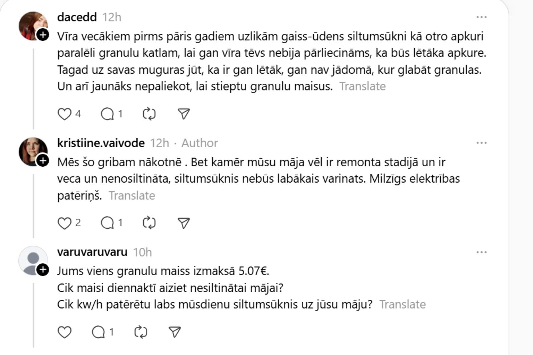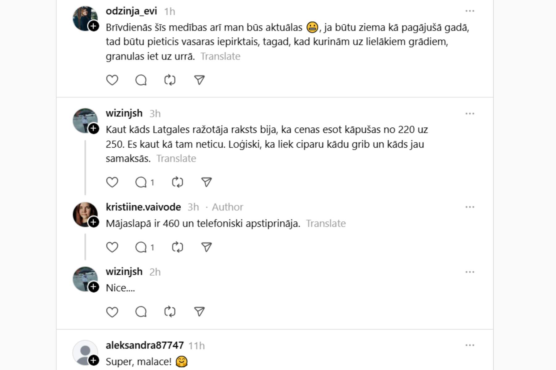 Arī socvietnēs ik dienu raisās diskusijas par to, kā pārlaist ziemu šajā situācijā, kad granulas jāmeklē kā ar uguni. Ja tās kaut kur parādās, tad jāpērk uzreiz, citādi pēc mirkļa tās jau ir izpirktas, var teikt, nu jau par jebkuru cenu. Lūk, komentāri no Threads.