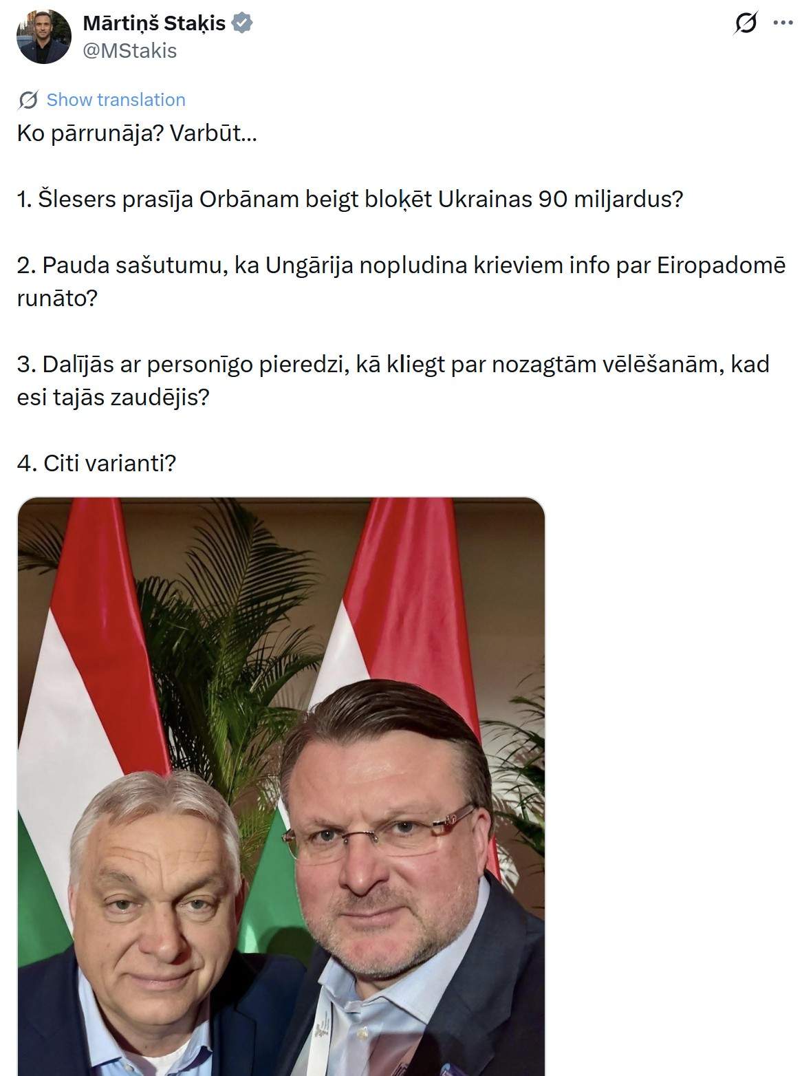 “Orbānam ir tāda seja, it kā viņš uzzinātu, ka Šleseram Maskava maksā vairāk.”