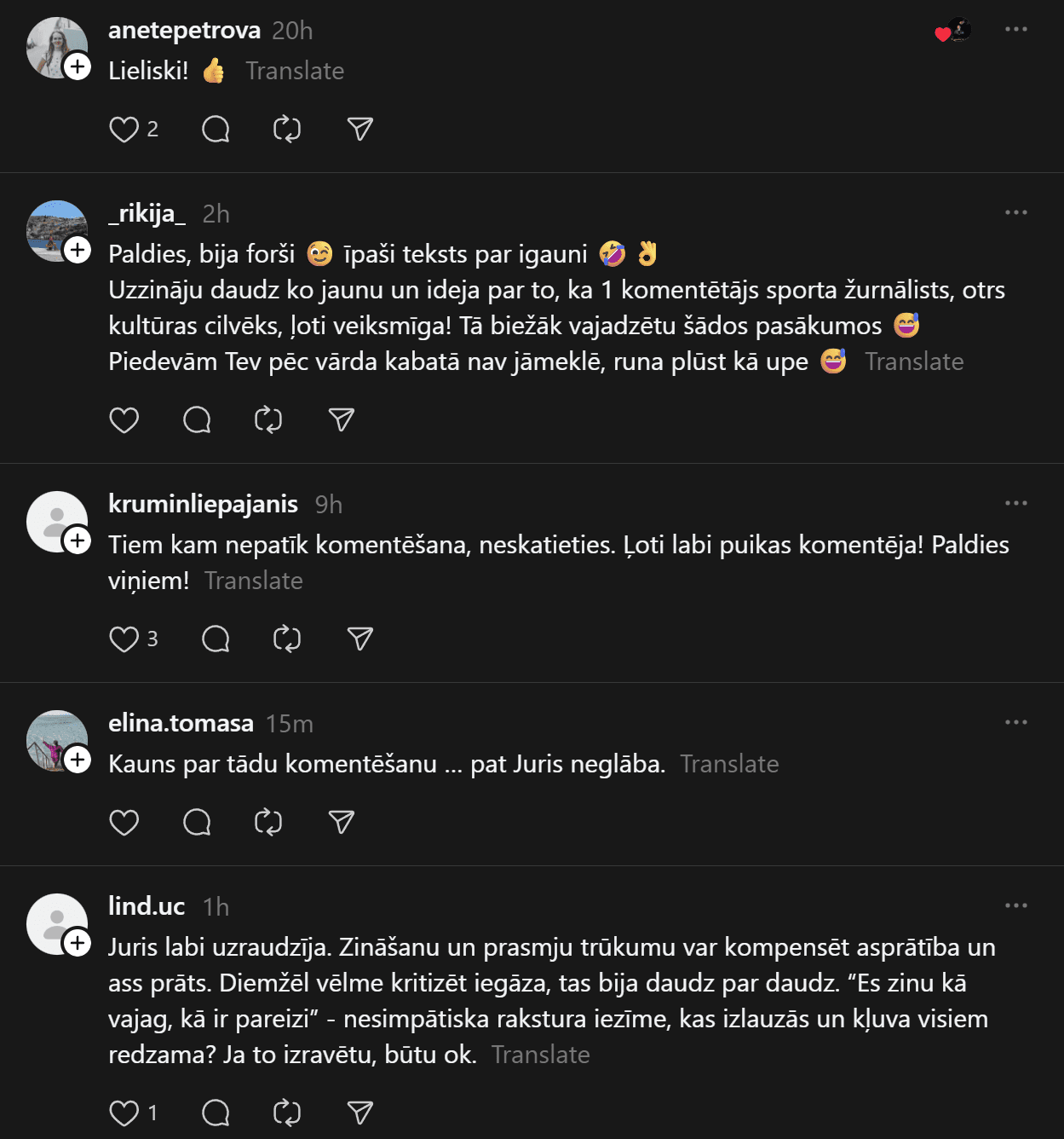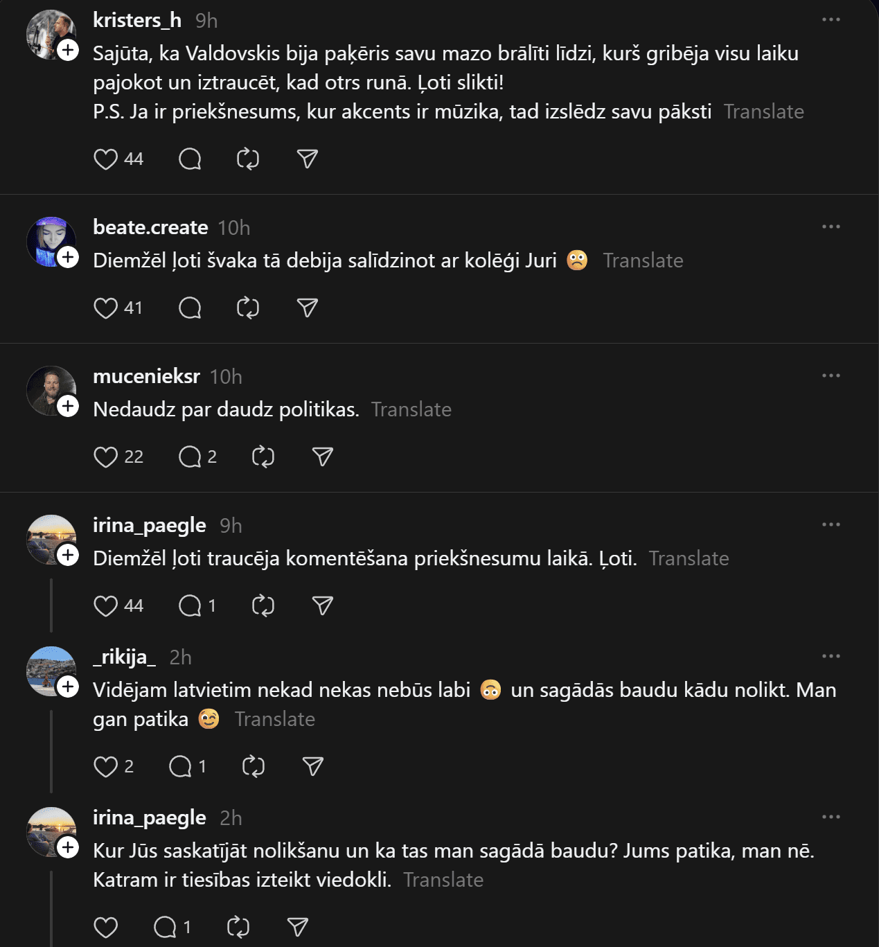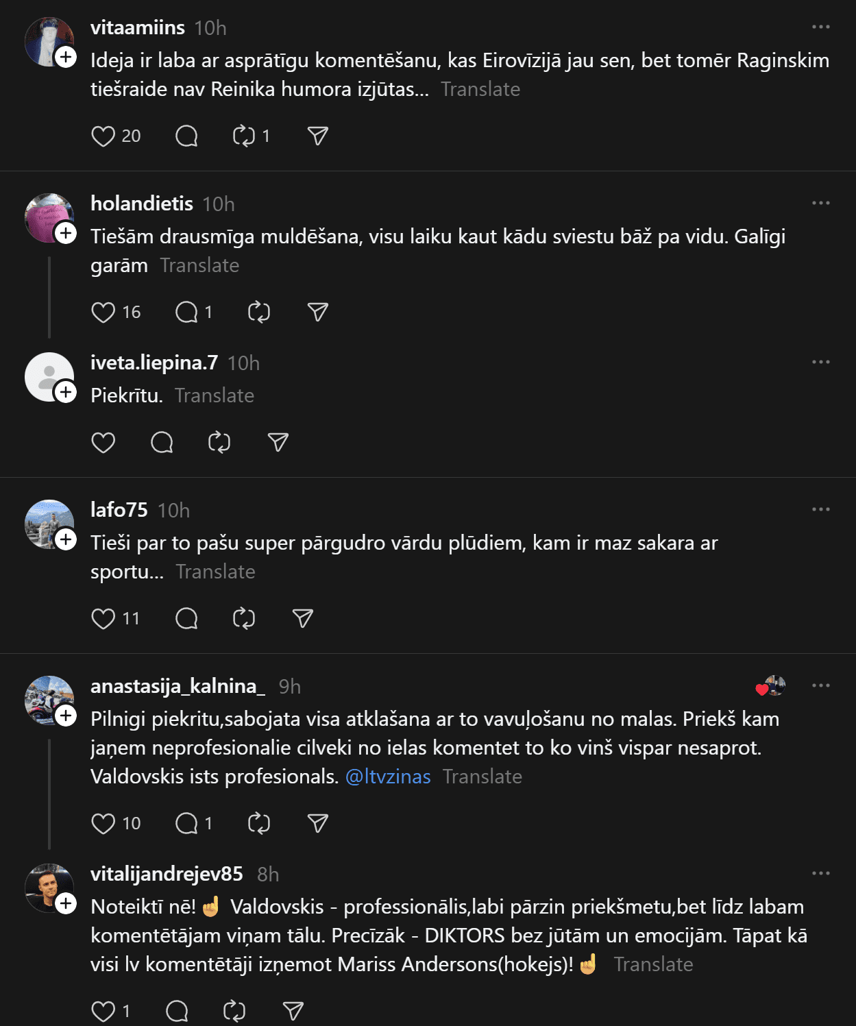 Tomēr šo skaisto brīdi daudziem šķiet pabojājuši vietējie olimpiādes komentētāji LTV. Soctīklos bija lasāma liela šūmēšanās, ka komentāru atklāšanas ceremonijas laikā bijis par daudz un citi pat pārslēguši citu sporta kanālu.