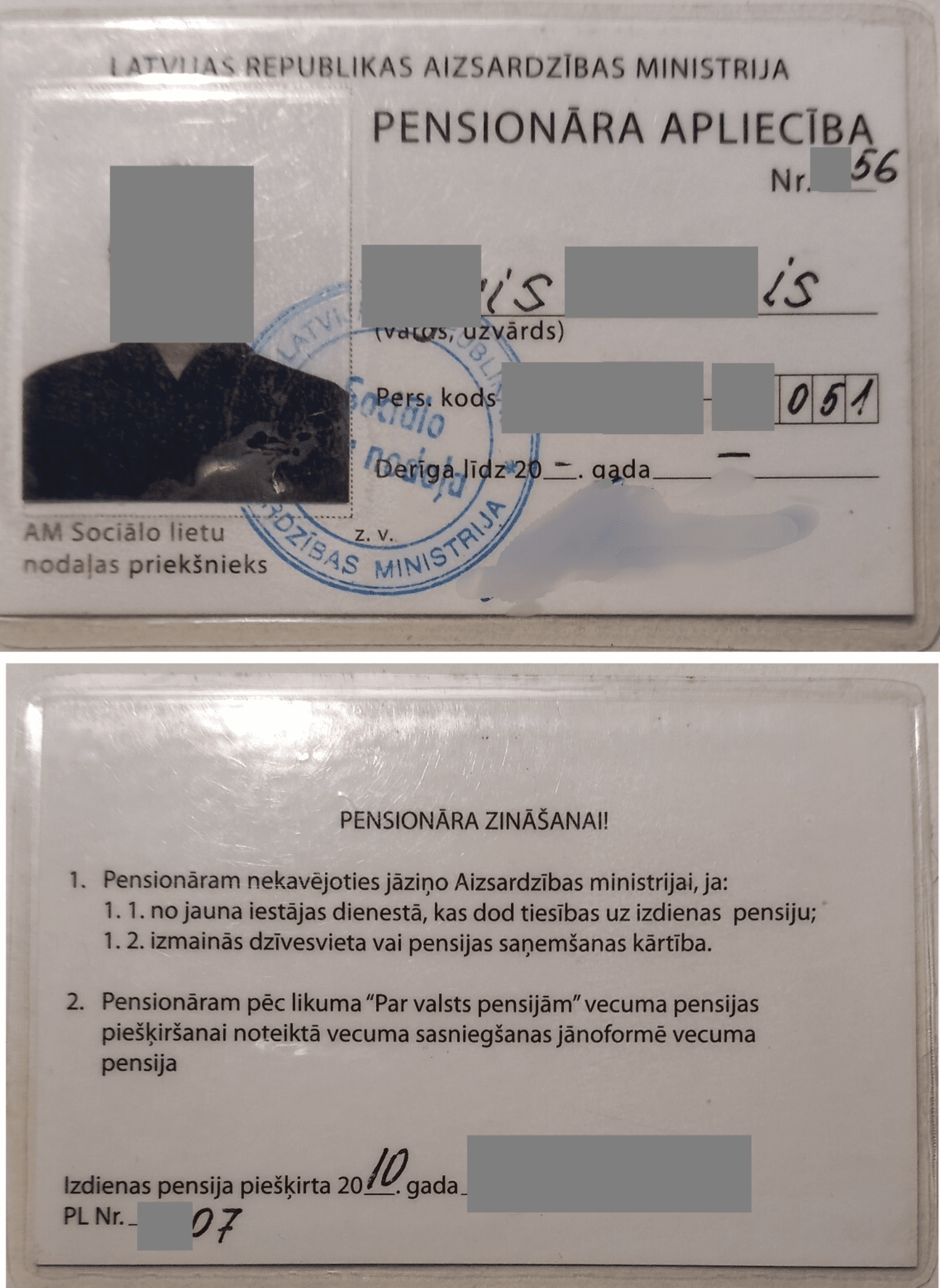 Kāds mūsu lasītājs, izlasot šo rakstu, ir atsūtījis savas pensionāra apliecības bildes.