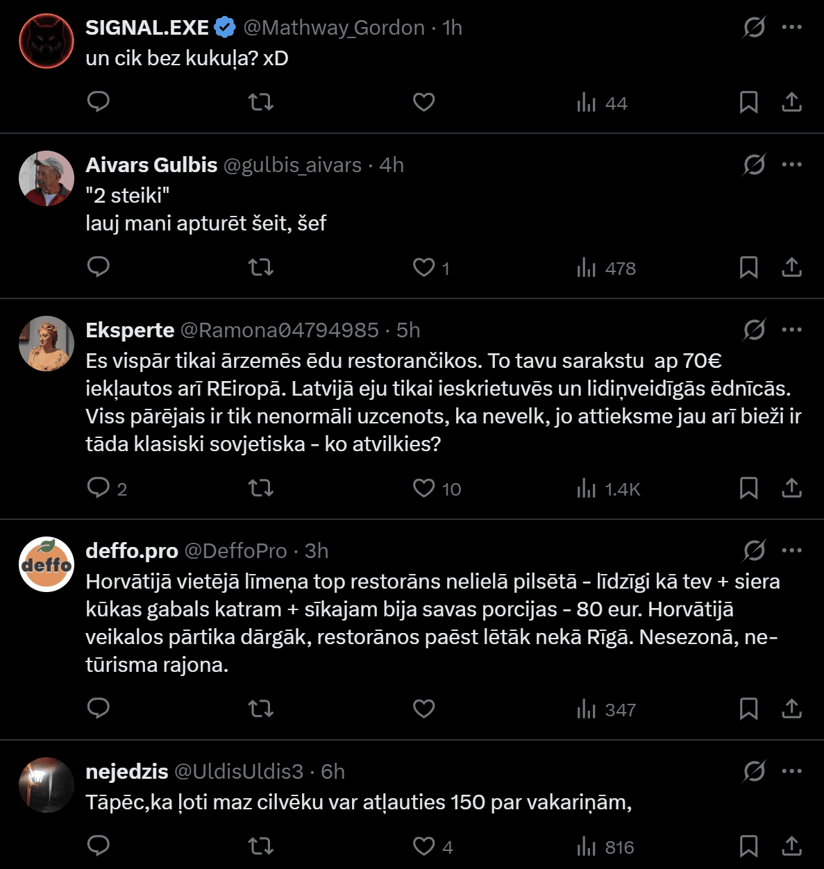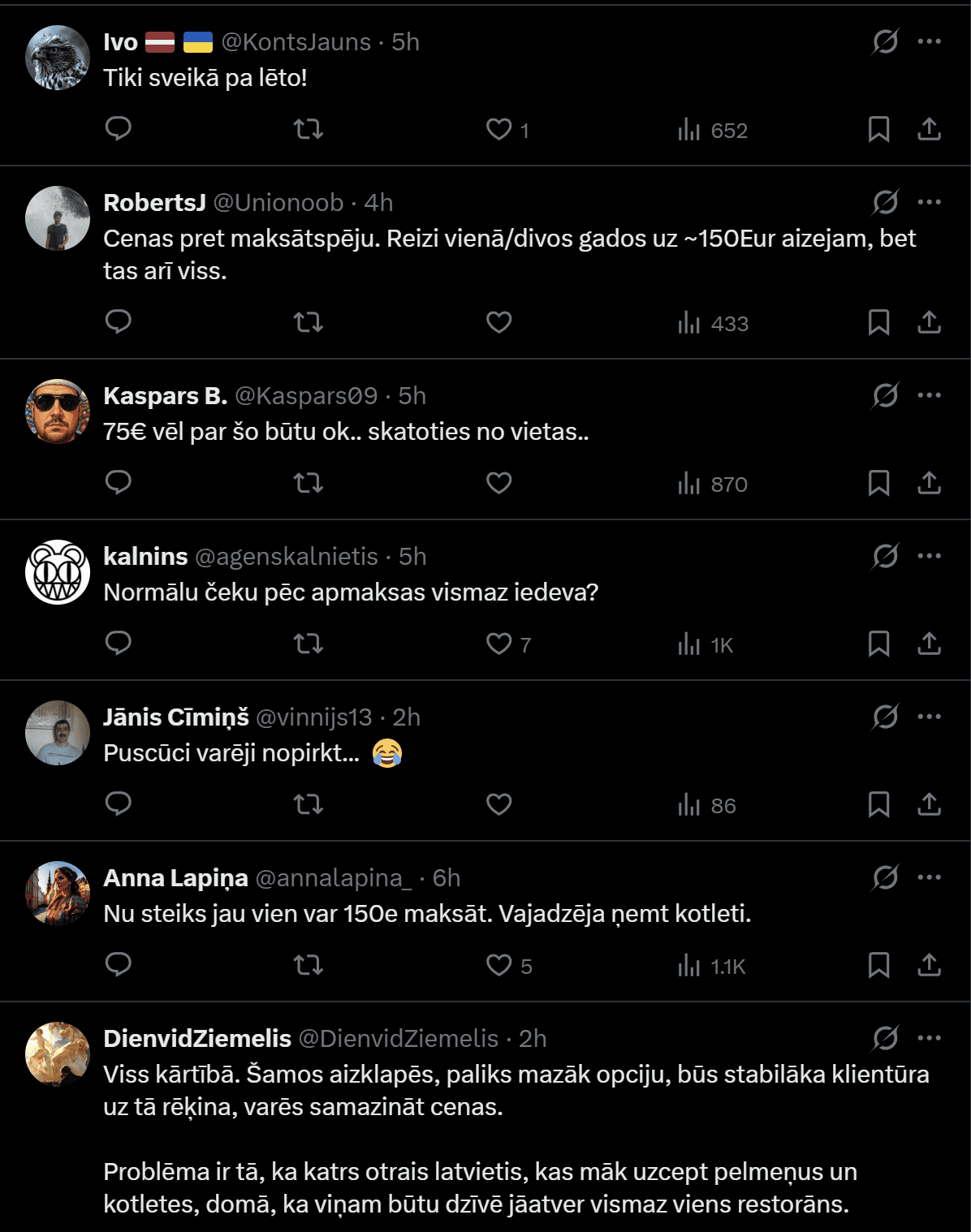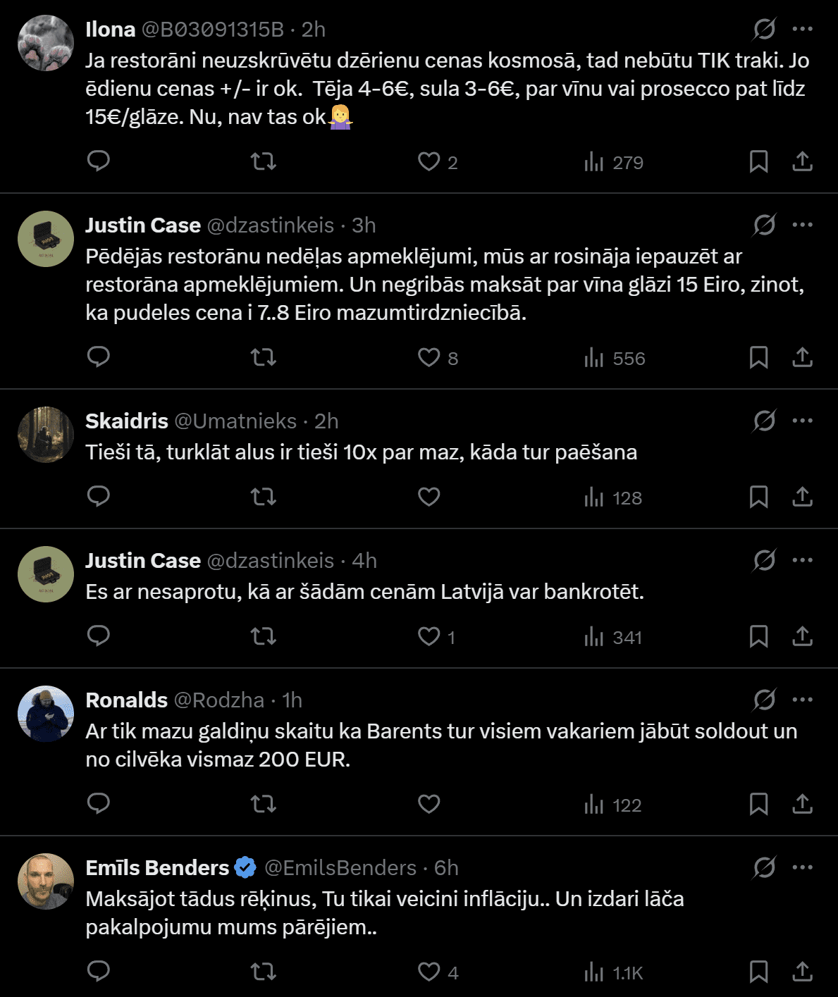 Sociālajos tīklos gan ļaudis diskutē, ka cenas augstas, tāpēc nesaprot, kāpēc viesmīlības nozarē ir krīze.
