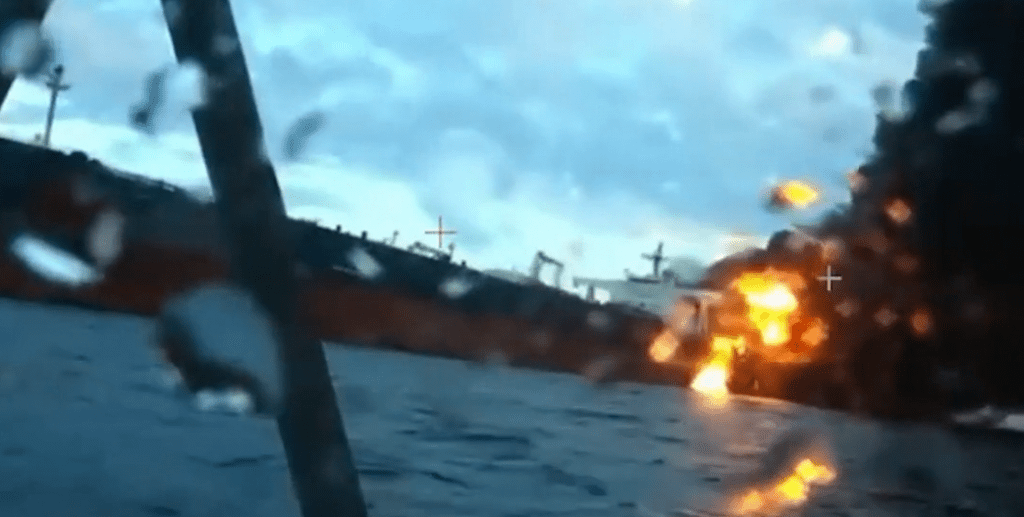 Slaidiņš publicē video, kā notika ēnu flotes kuģu saspridzināšana Melnajā jūrā