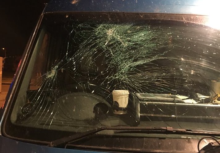Sociālajos tīklos kāds autovadītājs no Latvijas 5.augustā rakstīja, ka viņš piedzīvojis uzbrukumu Kalē, Valda Graumaņa vadītajam kravas autobusam tika izsists logs. “Izbīlis un izdauzīts logs busam. Paldies Kalē bēgļiem,” viņš ironiski raksta savā “Facebook”, pievienojot fotogrāfiju.