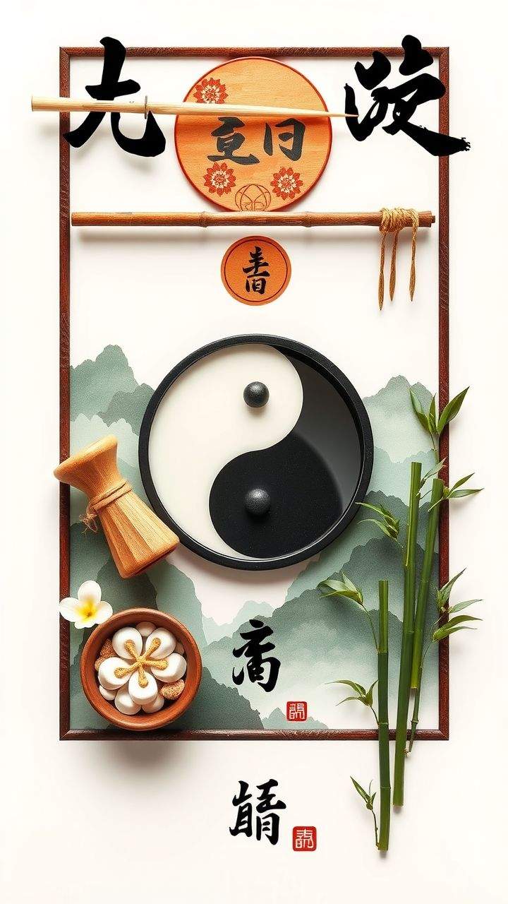 Sākšu ar zīmējumu, ko esmu izvēlējies par labāko šim rakstam: šis zīmējums raksturo tradicionālo Ķīnas medicīnu. Attēlā ietvertas akupunktūras adatas, augu zāles, ‘yin’ un ‘yang’ simbols, kā arī mierīga ainava ar kalniem un bambusu, kas kopumā attēlo harmoniju un holistisku dziedināšanu.