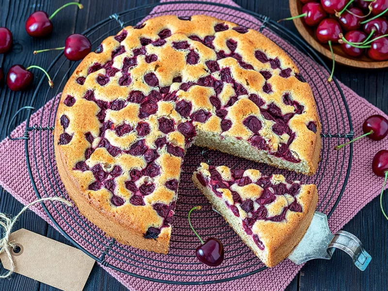 Ķirši piešķir kūkām svaigumu, nelielu skābumiņu un daudz krāsas. Ogām var uzbārstītinedaudz miltu, lai sula cepoties neiesūcas mīklā. Lieliska recepte!