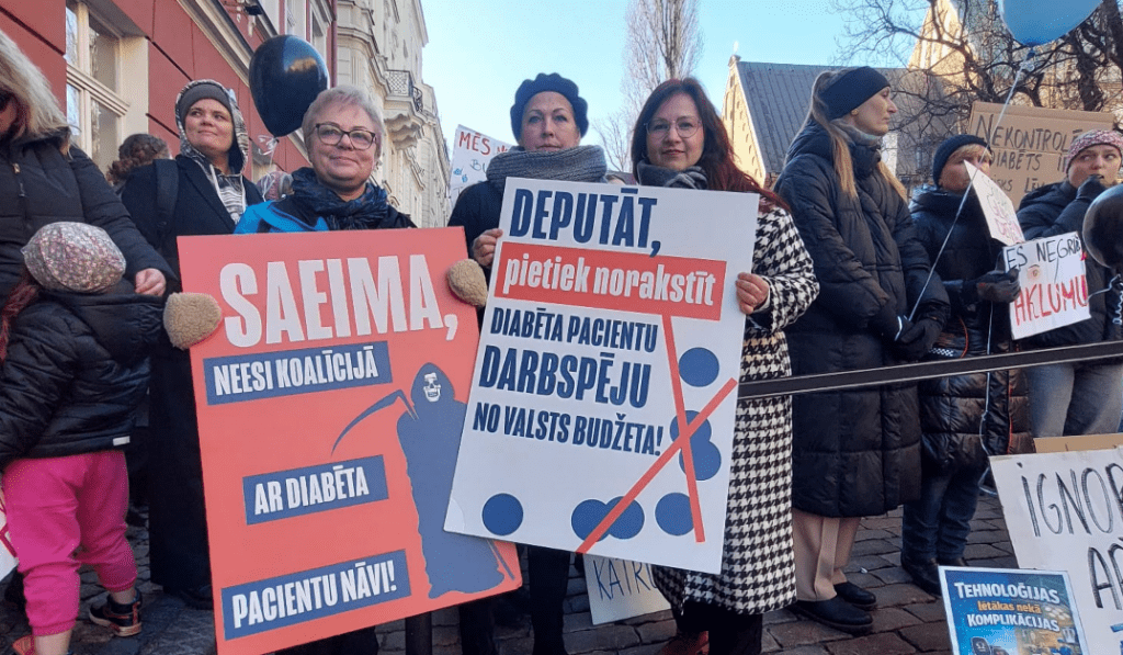 Diabēta biedrība ceturtdien pie Saeimas ēkas pulcējusies protestā, prasot valstij kompensēt 1. tipa diabēta pacientiem nepārtrauktās glikozes monitorēšanas sensorus, novēroja aģentūra LETA.