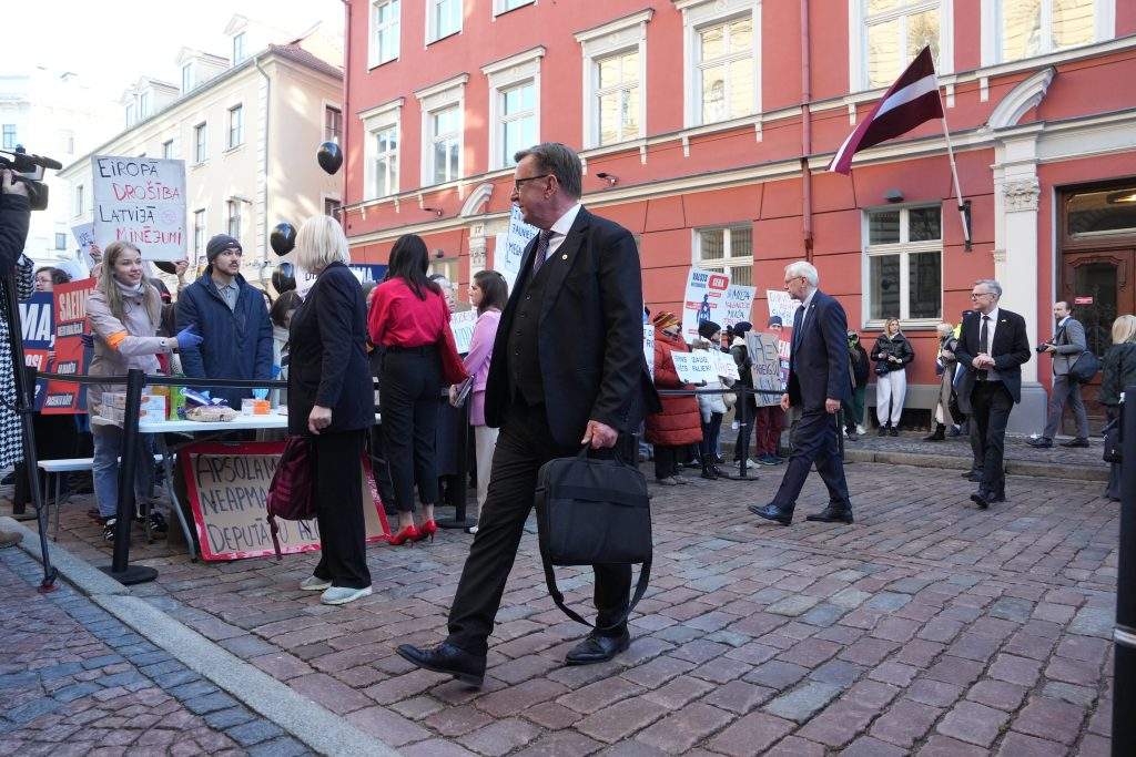 Cilvēki aicināja uz Saeimas sēdi ejošos deputātus nākt ar viņiem aprunāties.