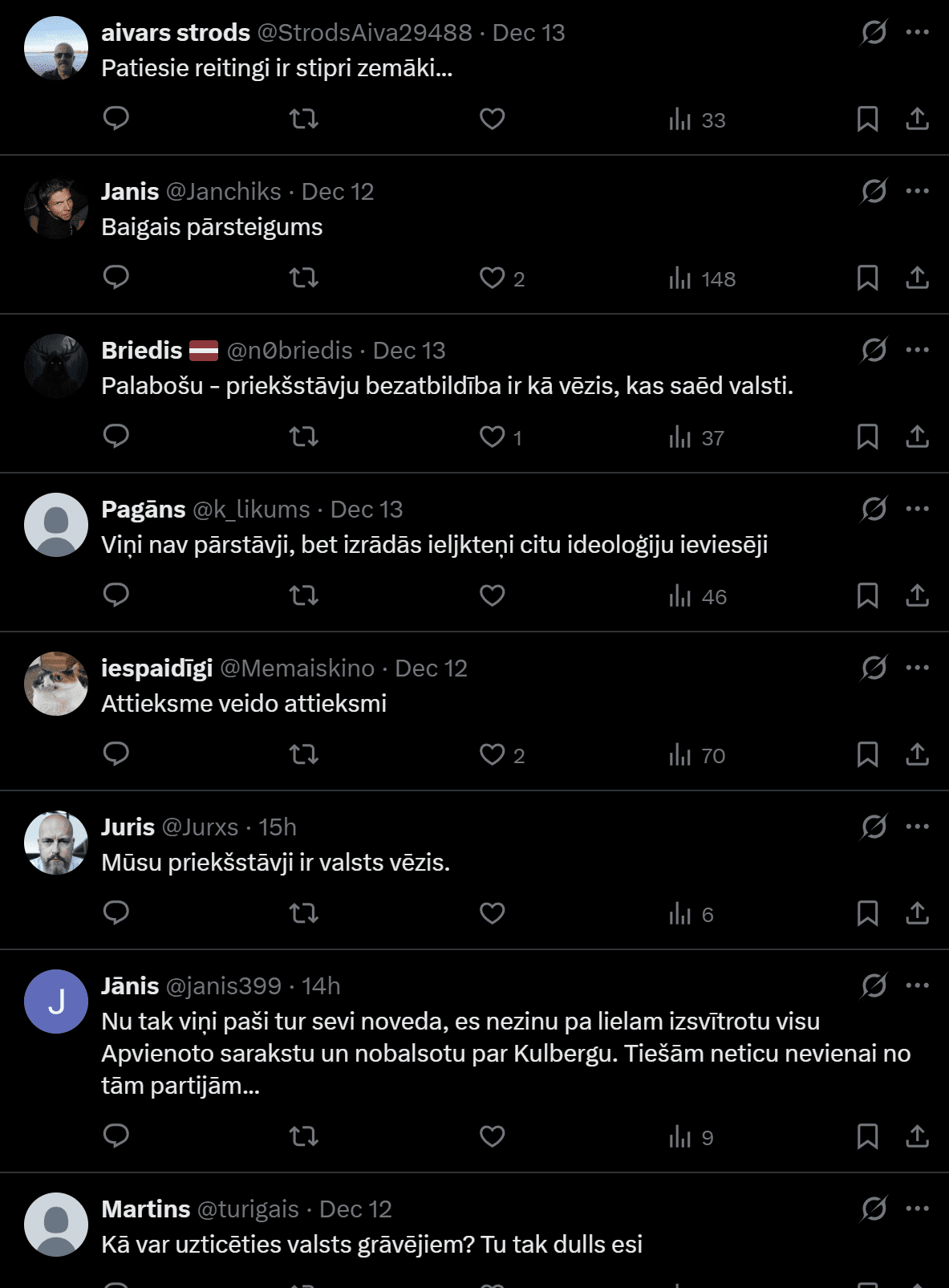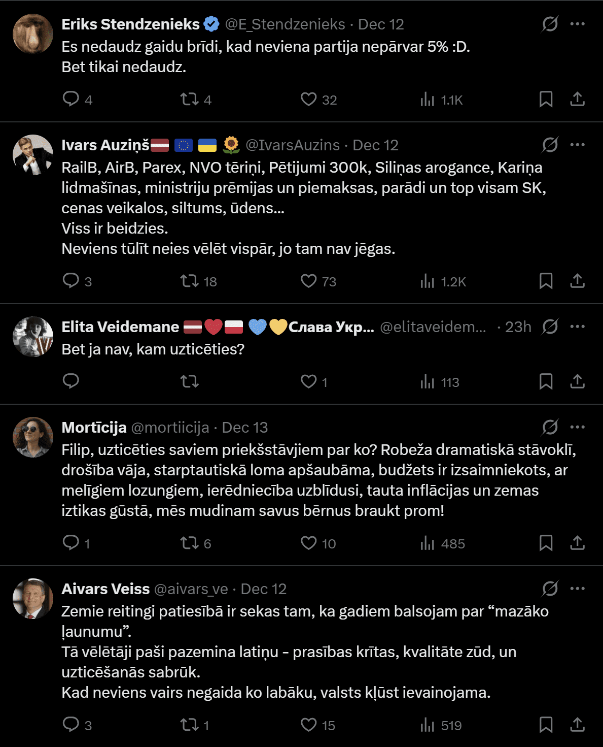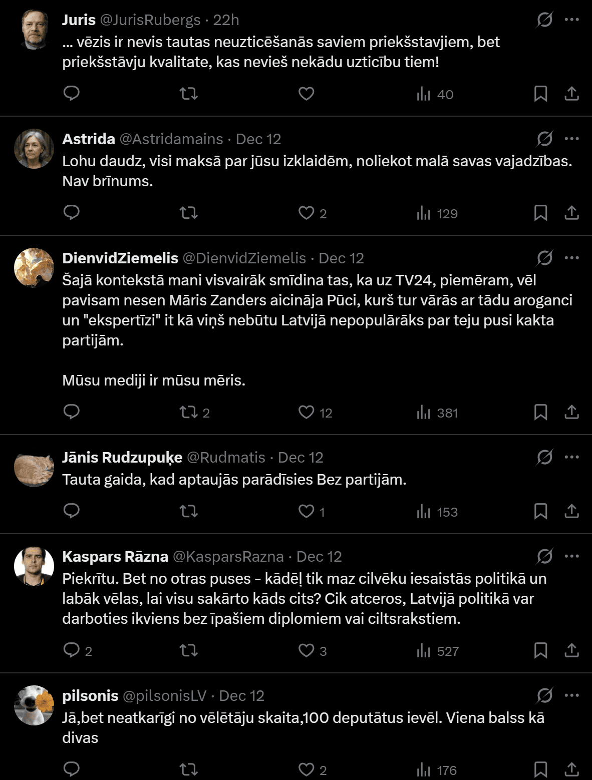 Neviens tūlīt neies vēlēt vispār, jo tam nav jēgas.— Ivars Auziņš🇱🇻 🇪🇺 🇺🇦 🌻 (@IvarsAuzins) December 12, 2025