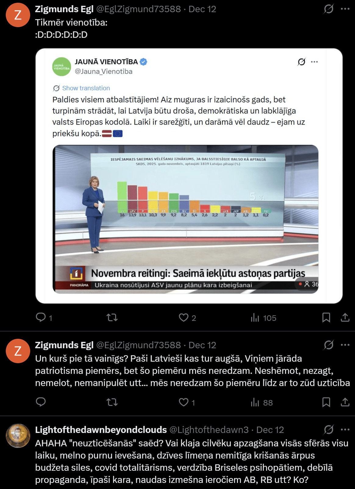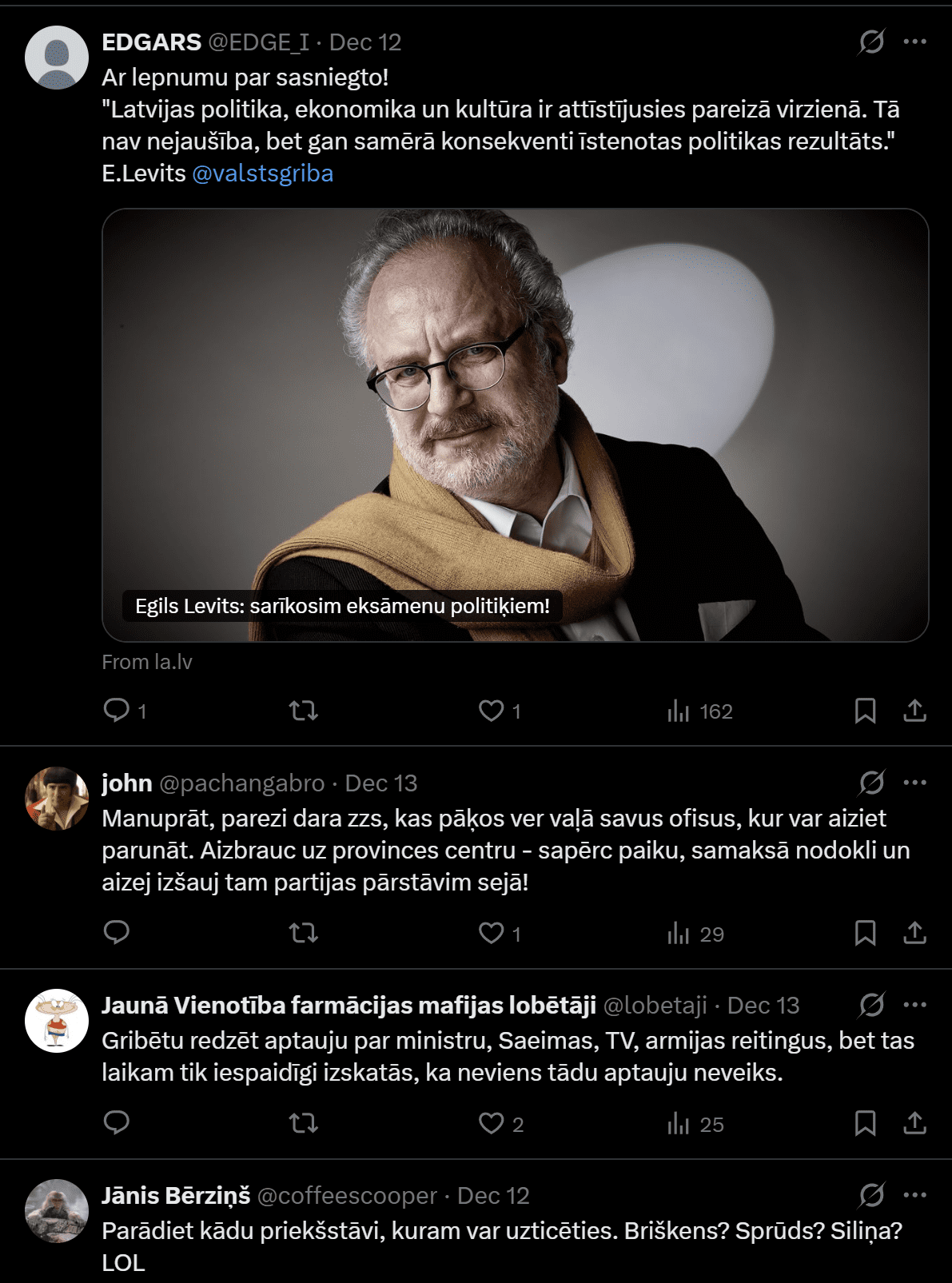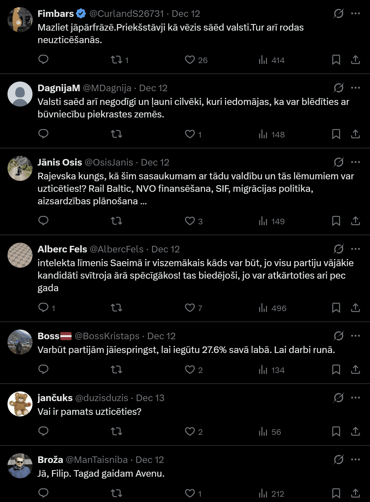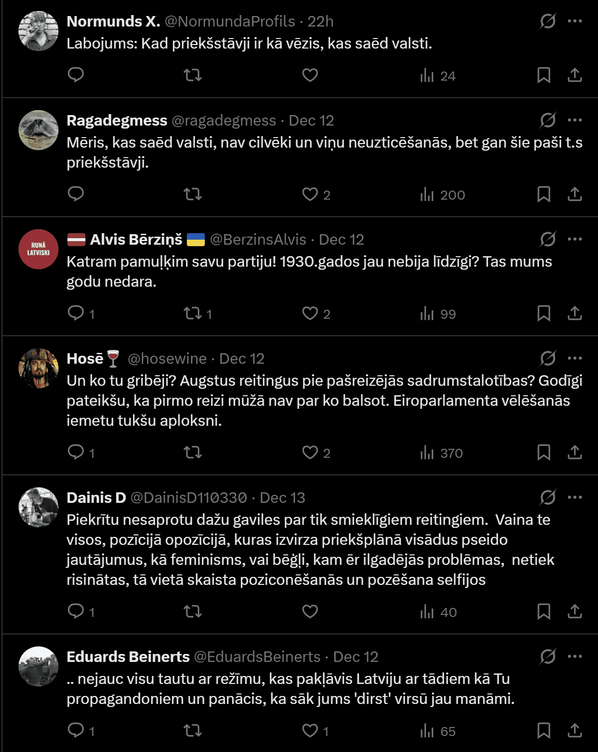 Neviens tūlīt neies vēlēt vispār, jo tam nav jēgas.— Ivars Auziņš🇱🇻 🇪🇺 🇺🇦 🌻 (@IvarsAuzins) December 12, 2025